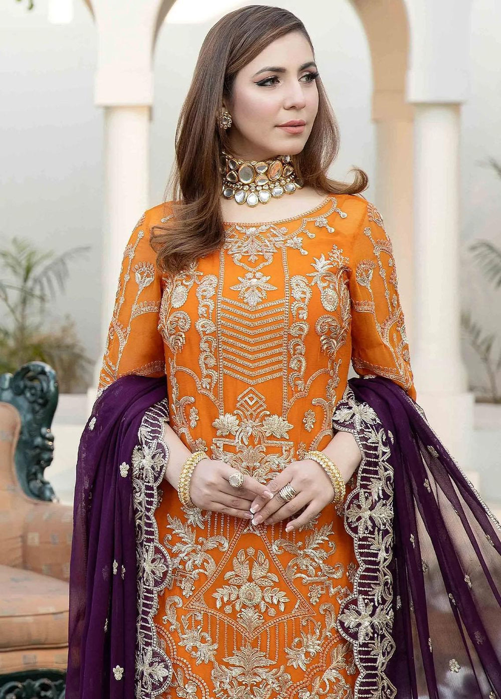 Embroidered chiffon for dupatta