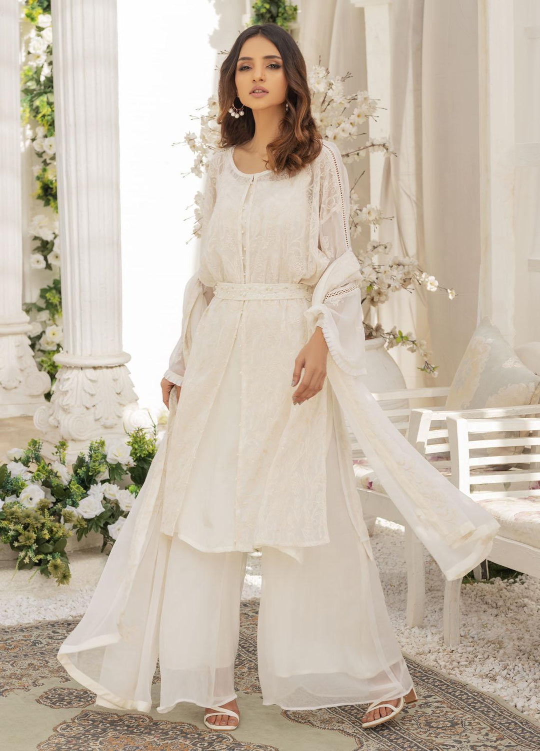 Azure Embroidered Chiffon Suits Unstitched 3 Piece AZU23L AS-95 Snowy Dove - Luxury Collection