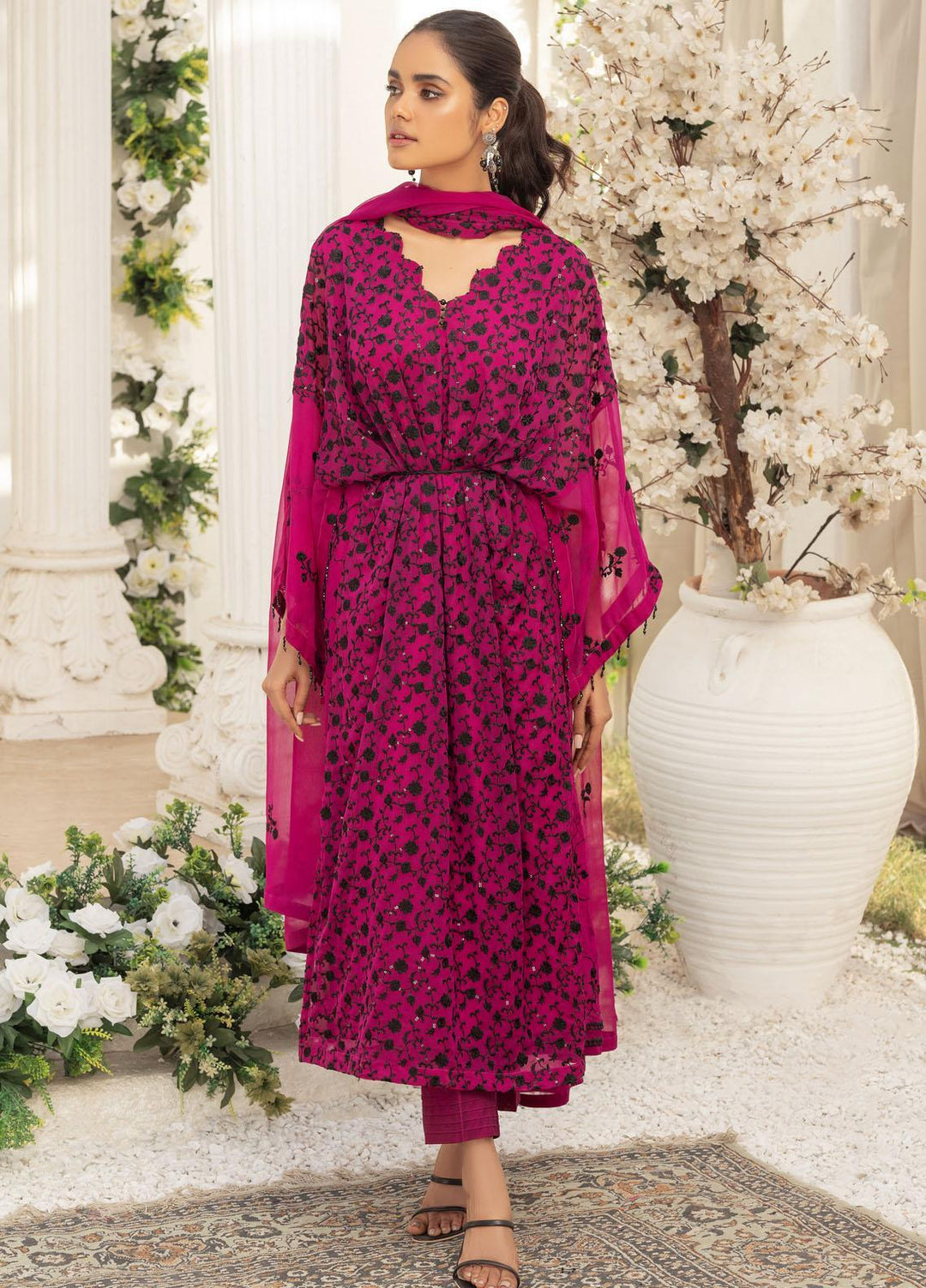 Cortesia By HZ Textiles Embroidered Chiffon Suits Unstitched 3 Piece HZ23C D-05 Carnation - Luxury Collection