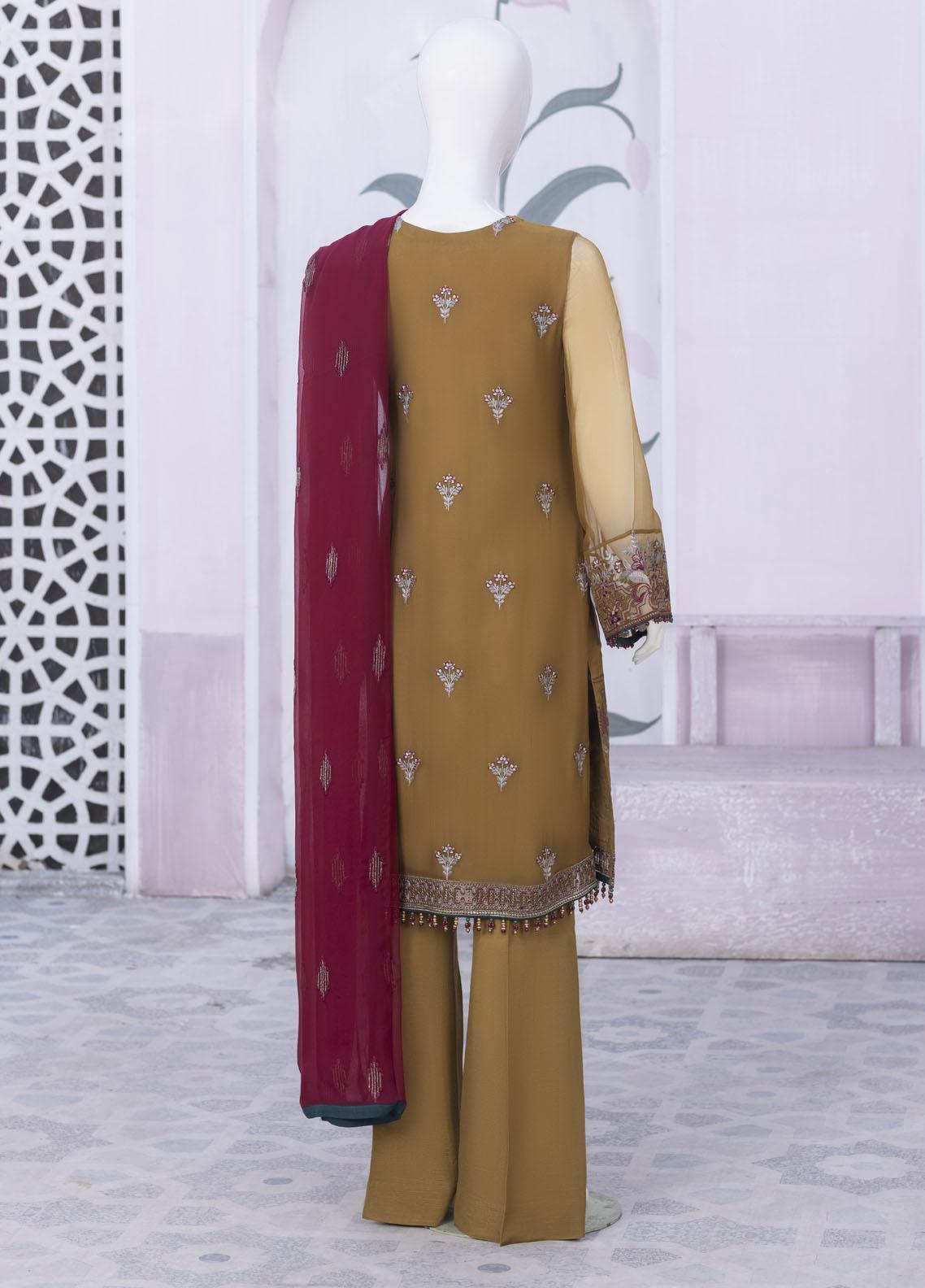 Flossie Embroidered Chiffon Suits Unstitched 3 Piece FS23NF N-801 Raw Sienna - Festive Collection