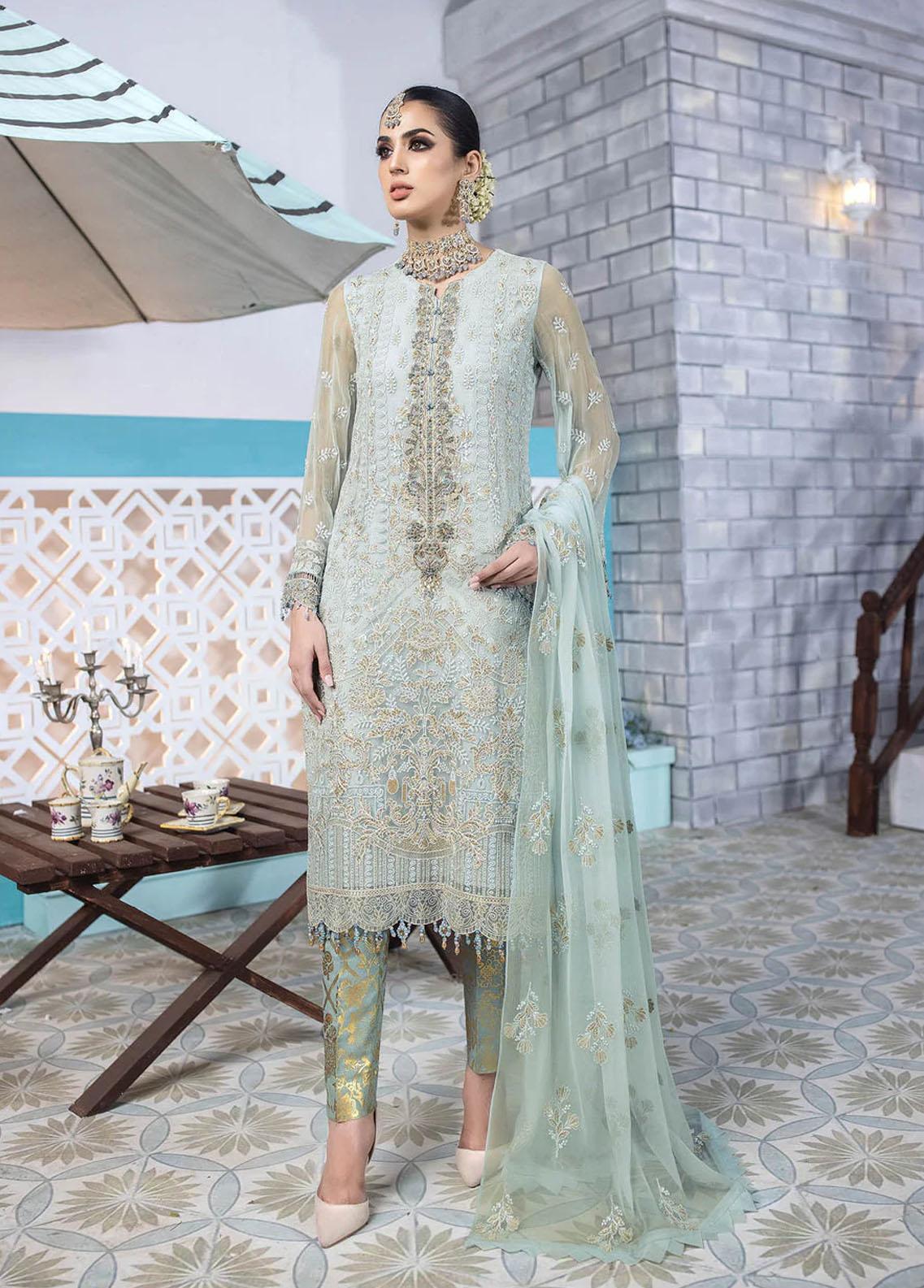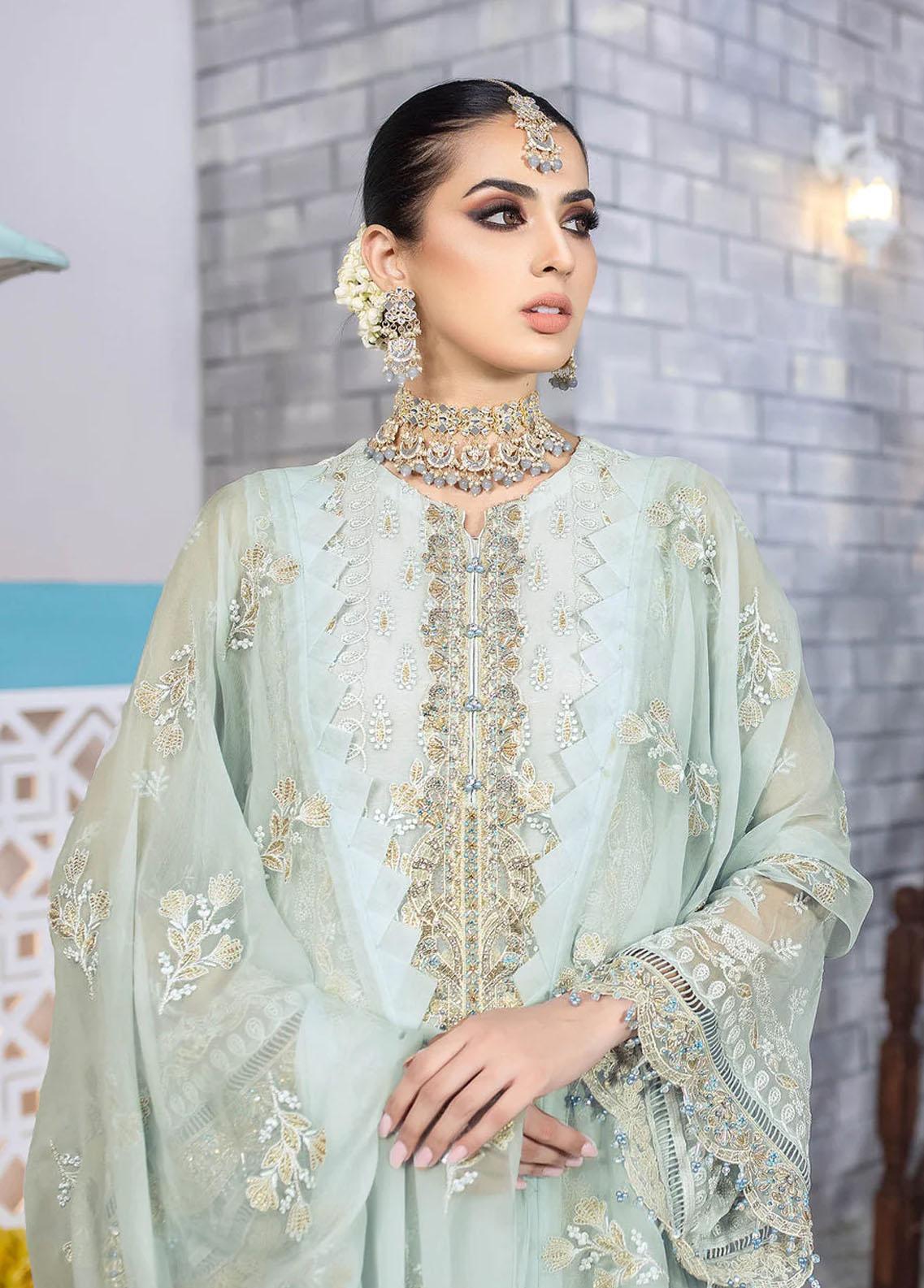 Flossie Embroidered Chiffon Suits Unstitched 3 Piece Morning Mist - Luxury Collection