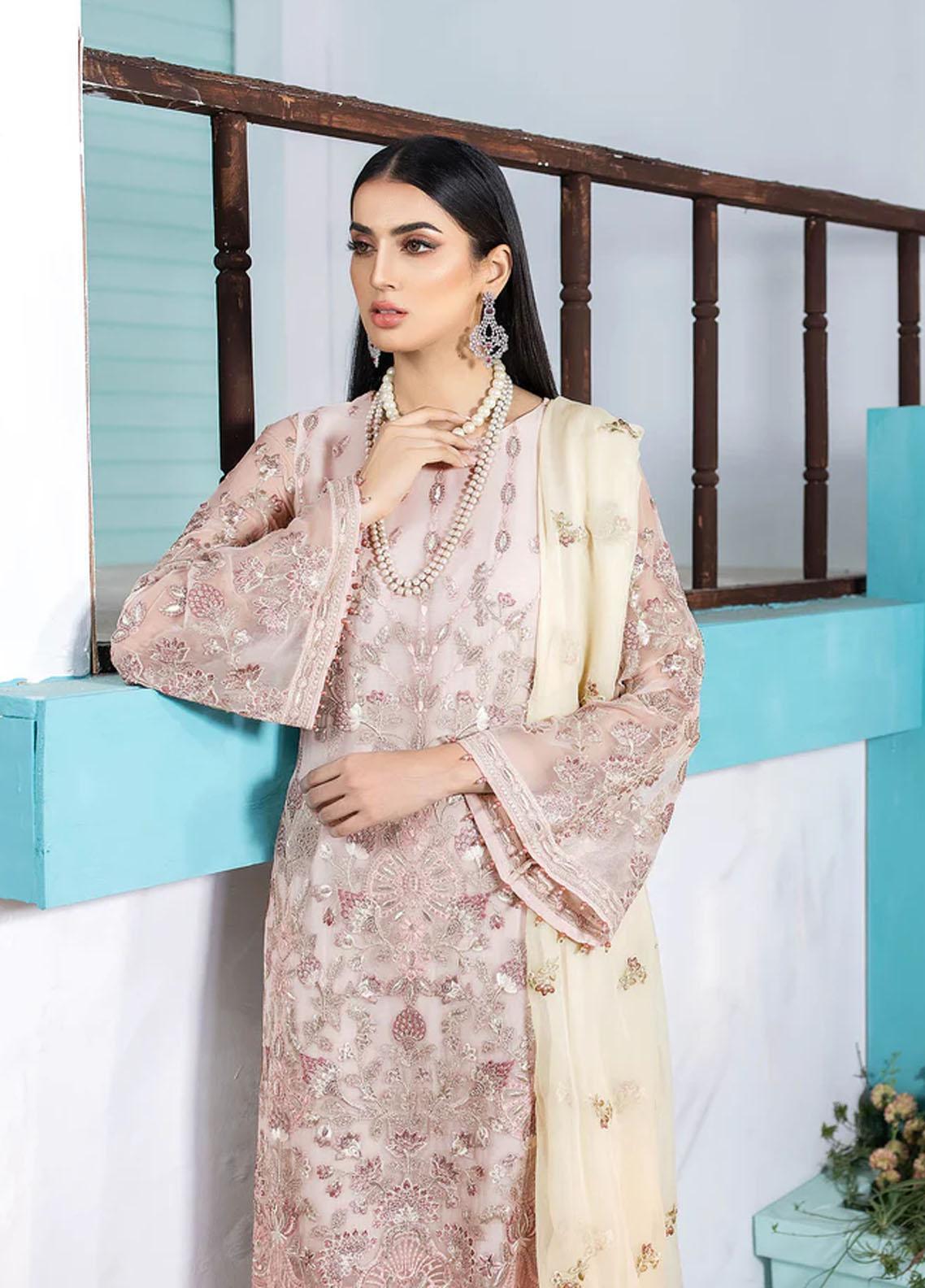 Flossie Embroidered Chiffon Suits Unstitched 3 Piece POWDER PUFF - Luxury Collection