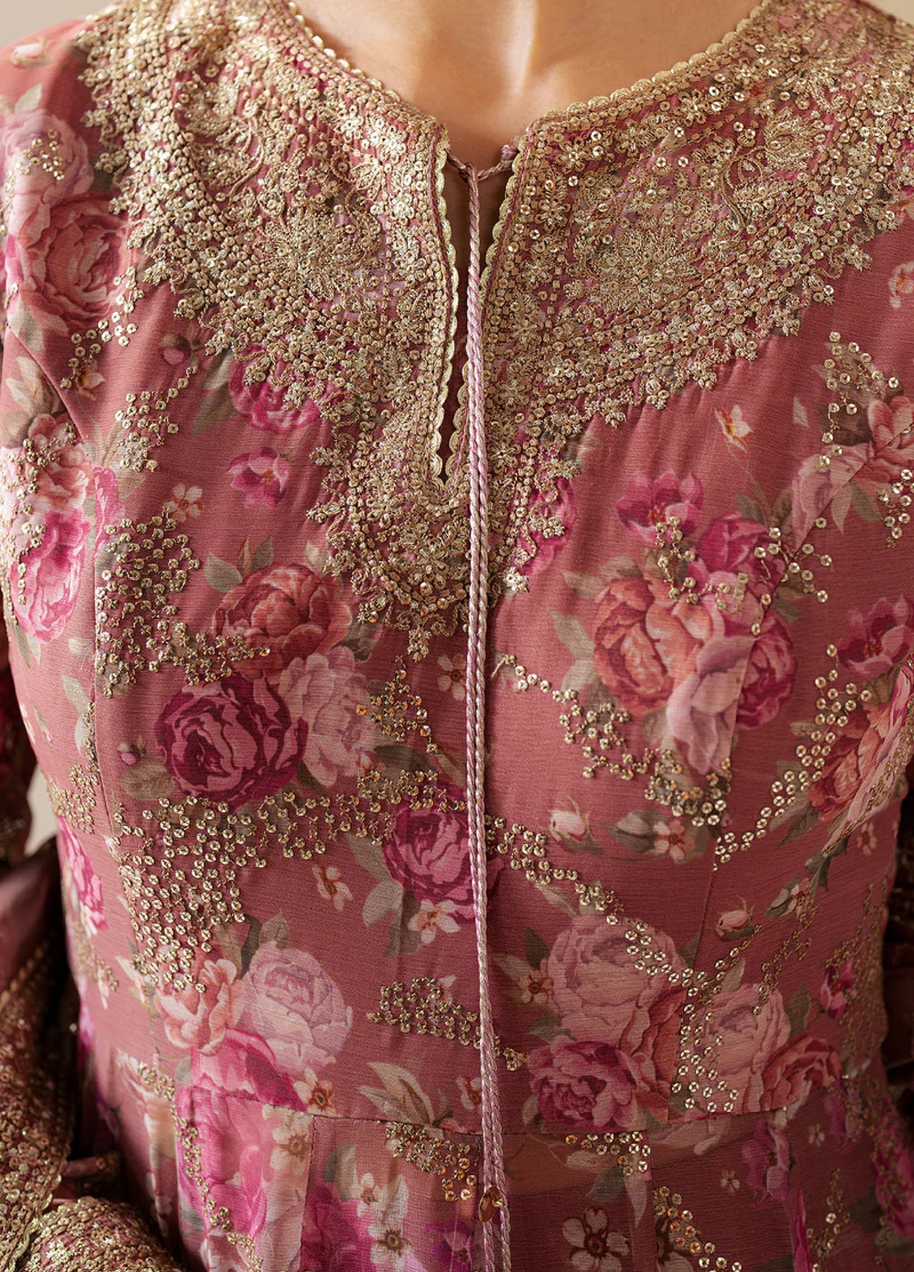 Expertly crafted with digital printed embroidered chiffon, this beautiful UC-3064 piece boasts a front and back yoke, panels, and sleeves border. Complete with an ethereal embroidered organza dupatta and dyed rawsilk bottom, this outfit exudes sophistication and elegance. Perfect for any formal occasion.