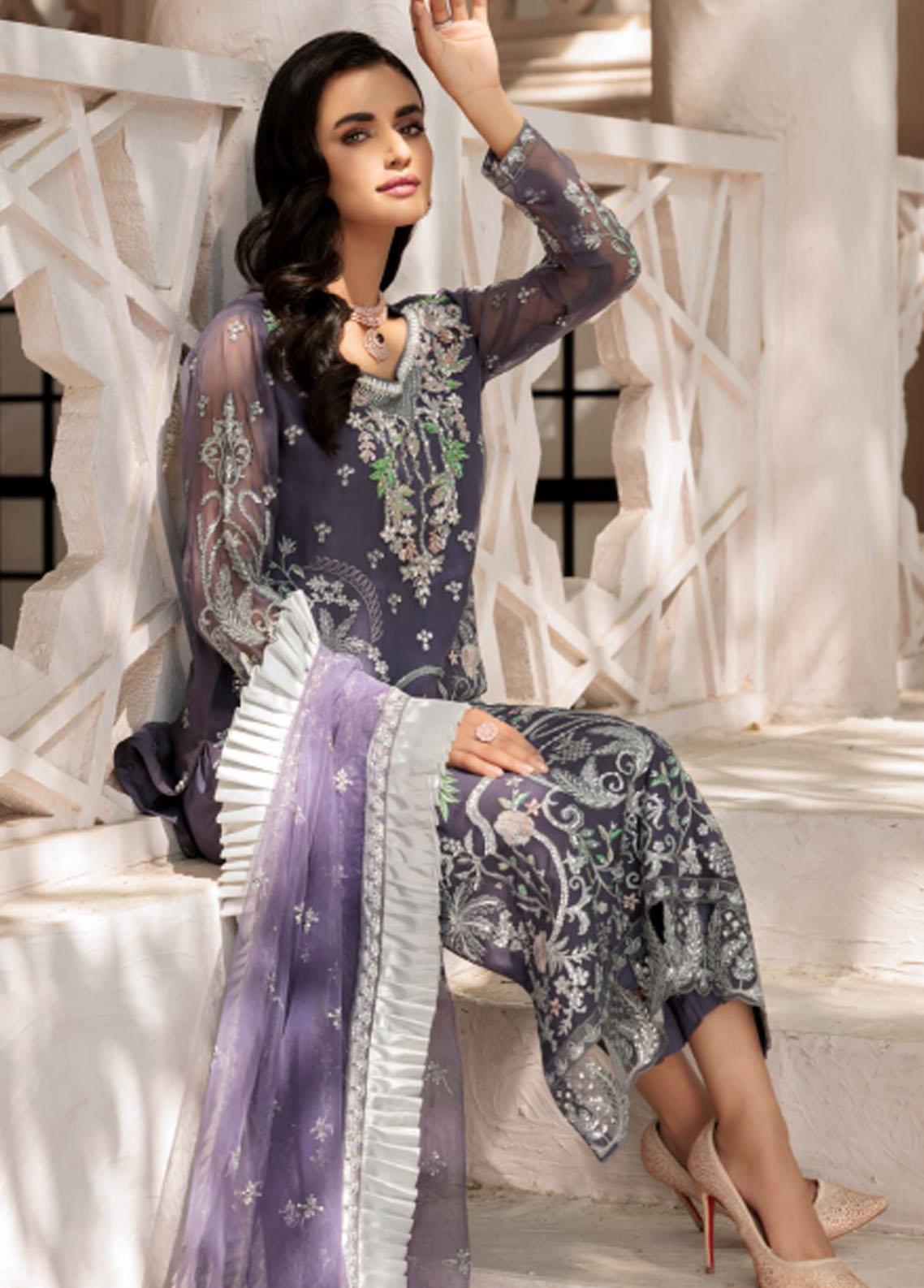 Le Festa By Emaan Adeel Embroidered Chiffon Suit Unstitched 3 Piece EA22-LF5 LF-502 - Premium Collection