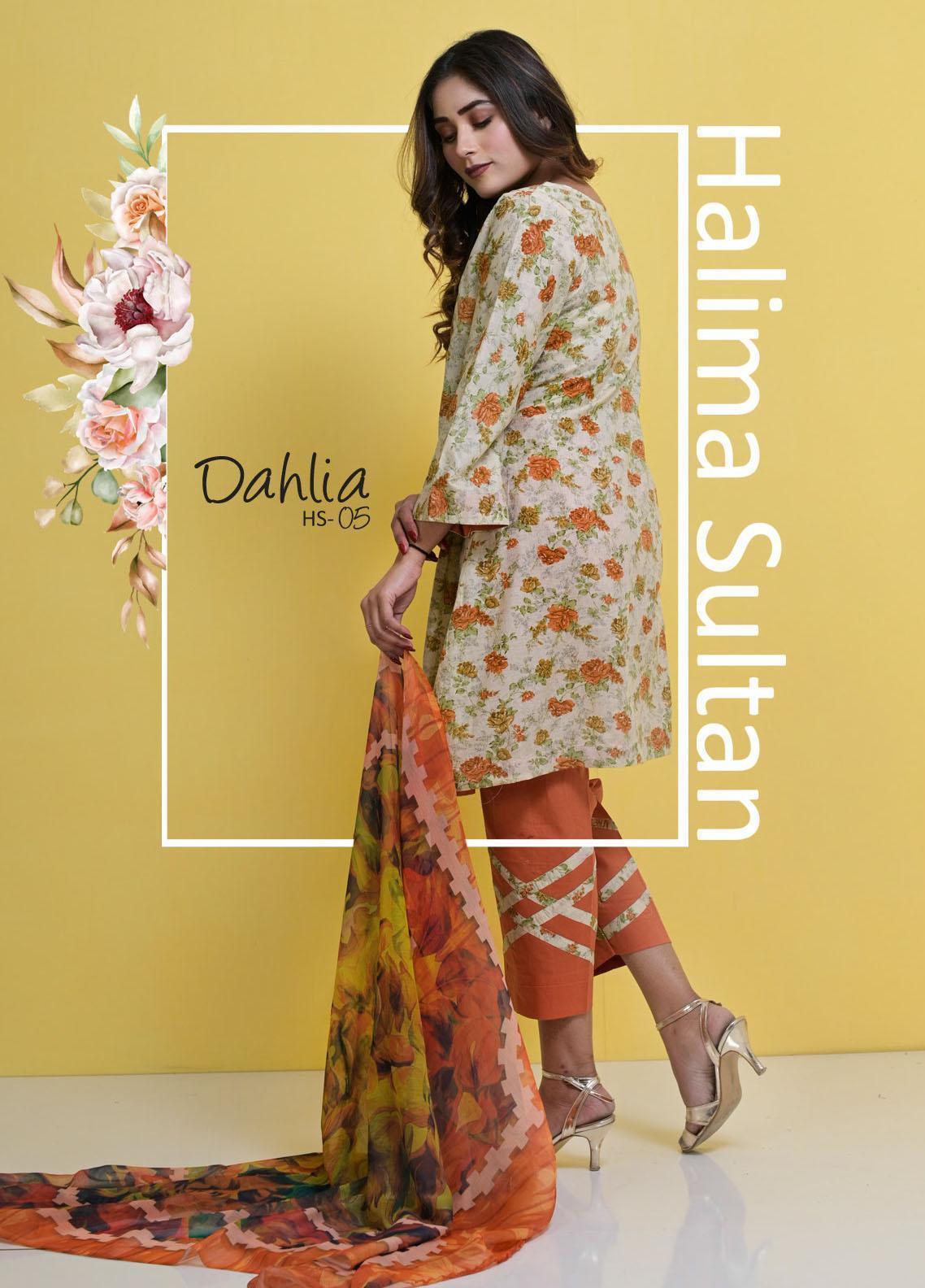 Halima Sultan Embroidered Lawn Suits Unstitched 3 Piece HS21-L3 05 Dahlia - Summer Collection