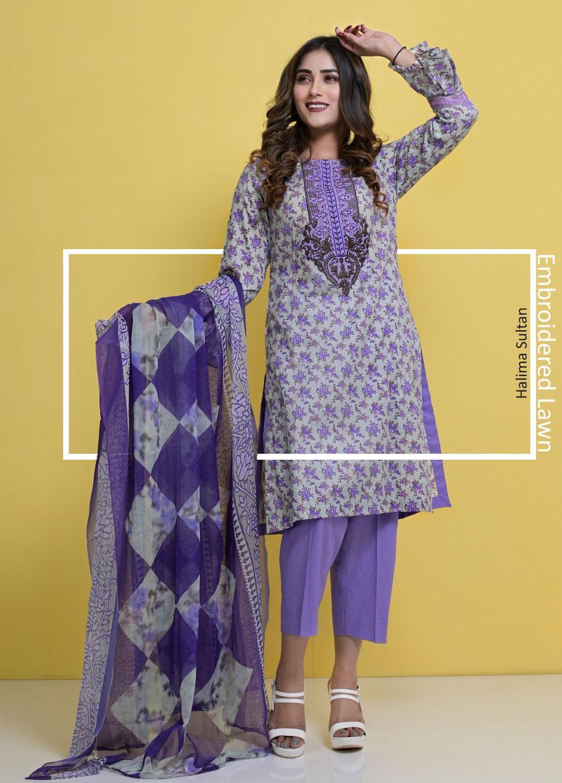 Halima Sultan Embroidered Lawn Suits Unstitched 3 Piece HS21-L3 06 Lavender - Summer Collection