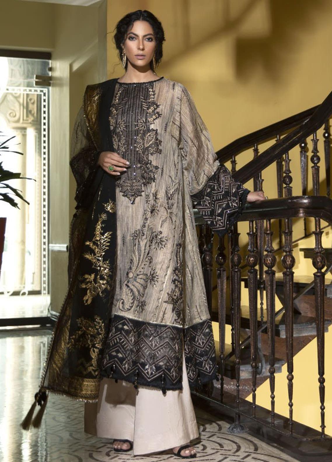 3 PIECE EMBROIDERED ZARI JACQUARD NET SUIT