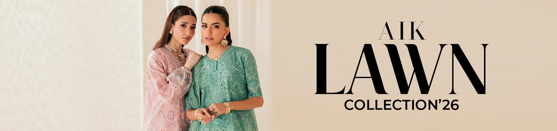 The AIK Atelier collection includes a range of formal fabrics suited for festive gatherings and special occasions. Embroidered chiffon suits remain a popular choice, offering lightweight elegance with detailed embroidery across shirts and dupattas.