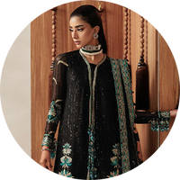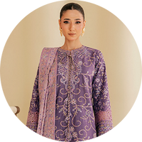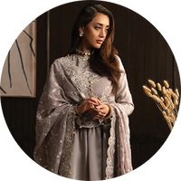 The Lady by Aik Atelier festive collection introduces graceful embroidered suits designed for celebratory occasions. The collection showcases refined embroidery, delicate embellishments, and modern color combinations that reflect the signature style of AIK clothing.