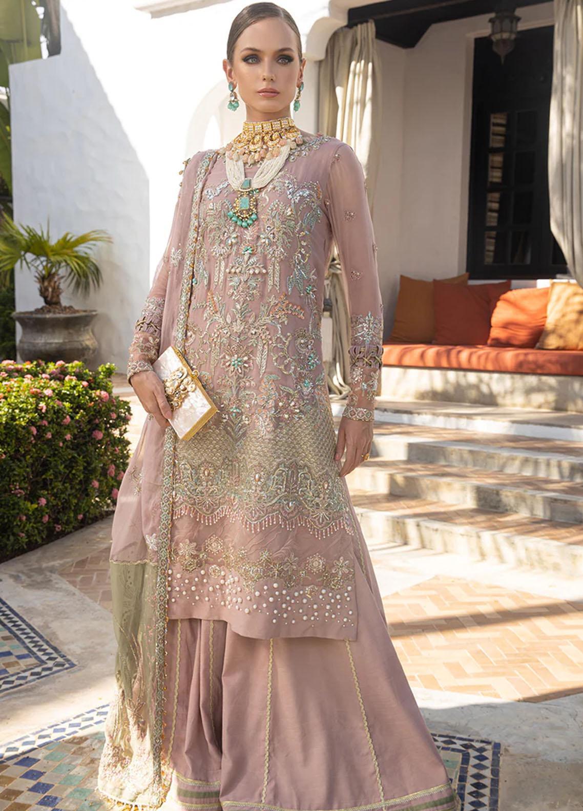 Alif By AJR Couture Embroidered Chiffon Suits Unstitched 4 Piece AJR23AL ALC-02 Dahlia - Luxury Collection