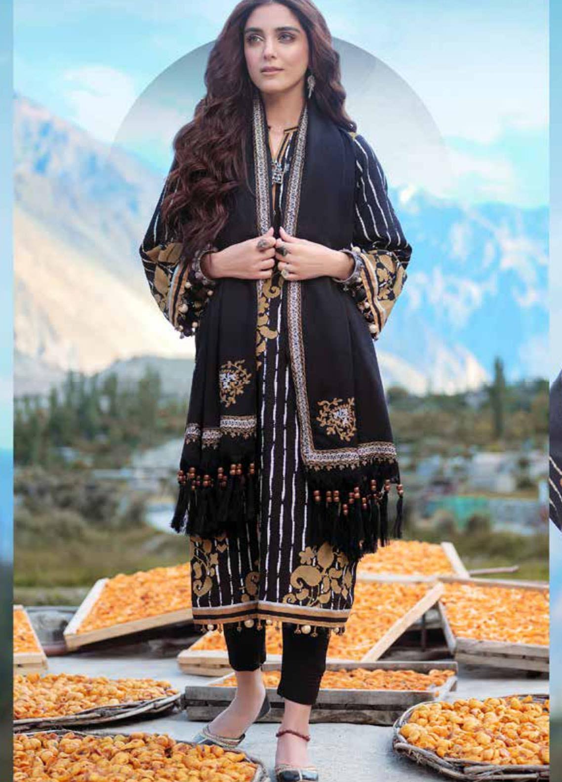 Al Karam Printed Khaddar Suits Unstitched 3 Piece AK21W FW-19-21 Black - Winter Collection