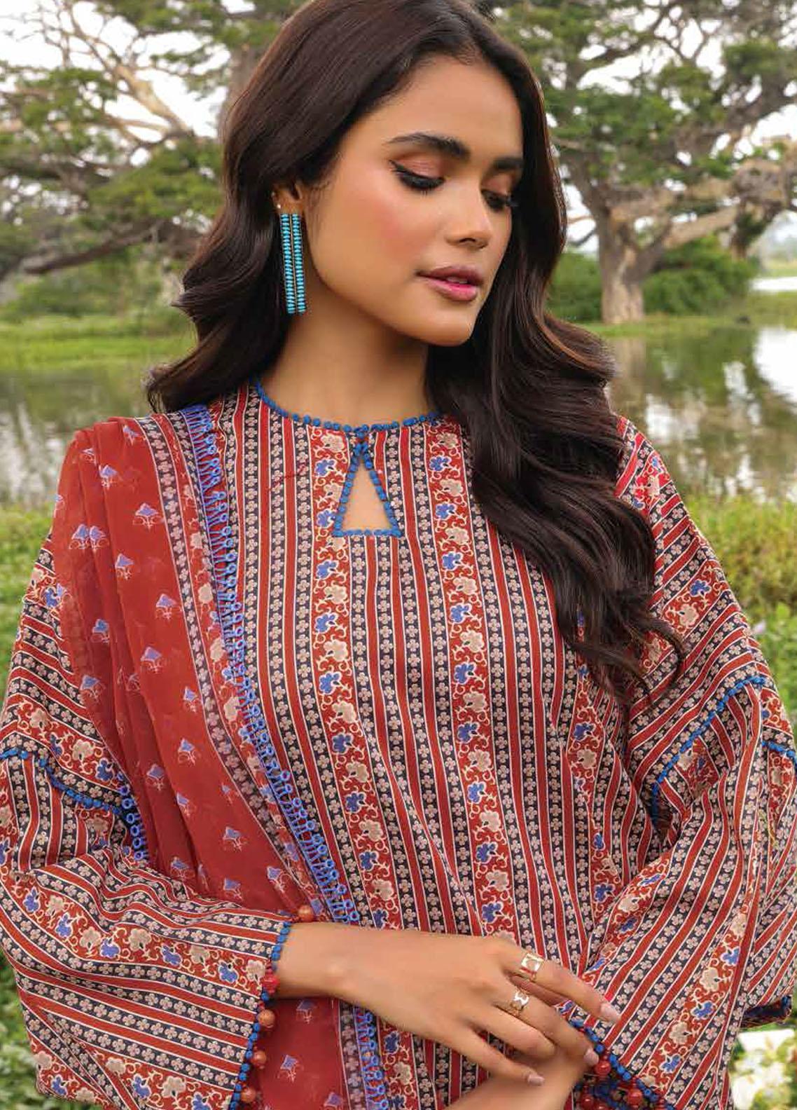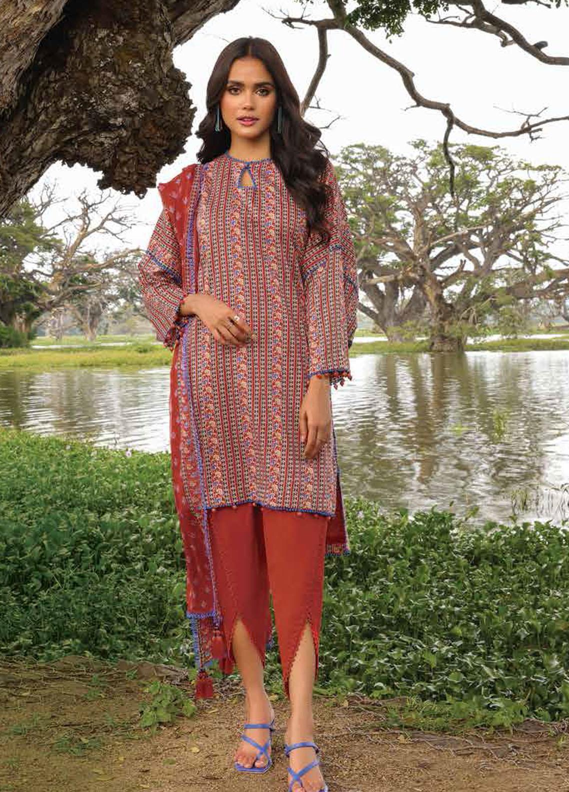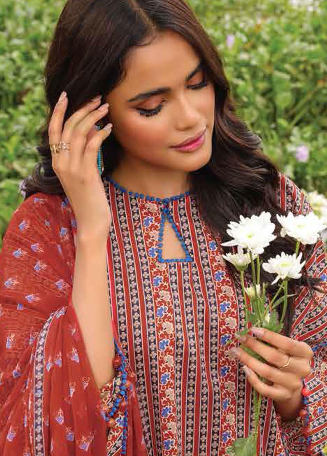 Al Karam Printed Lawn Suits Unstitched 2 Piece AK23SSL SS-64.1-23-Red - Summer Collection