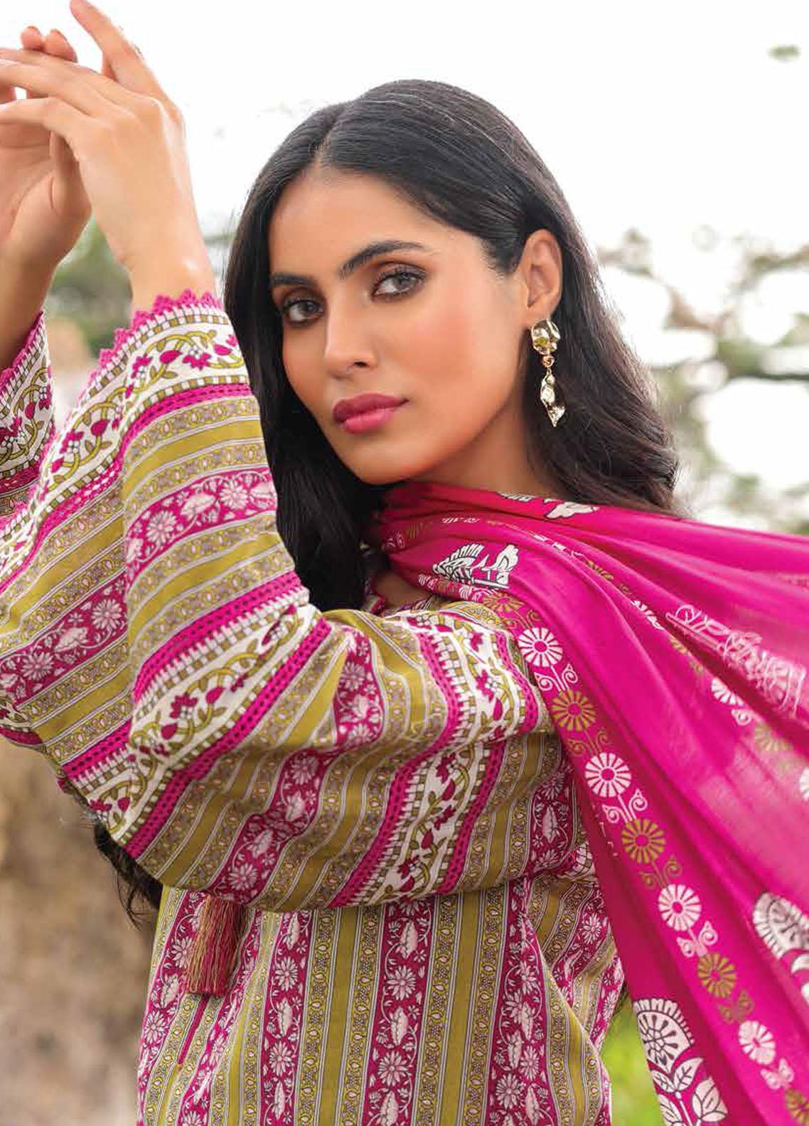 Al Karam Printed Lawn Suits Unstitched 3 Piece AK23SSL SS-5.1-2-23-Olive Green - Summer Collection
