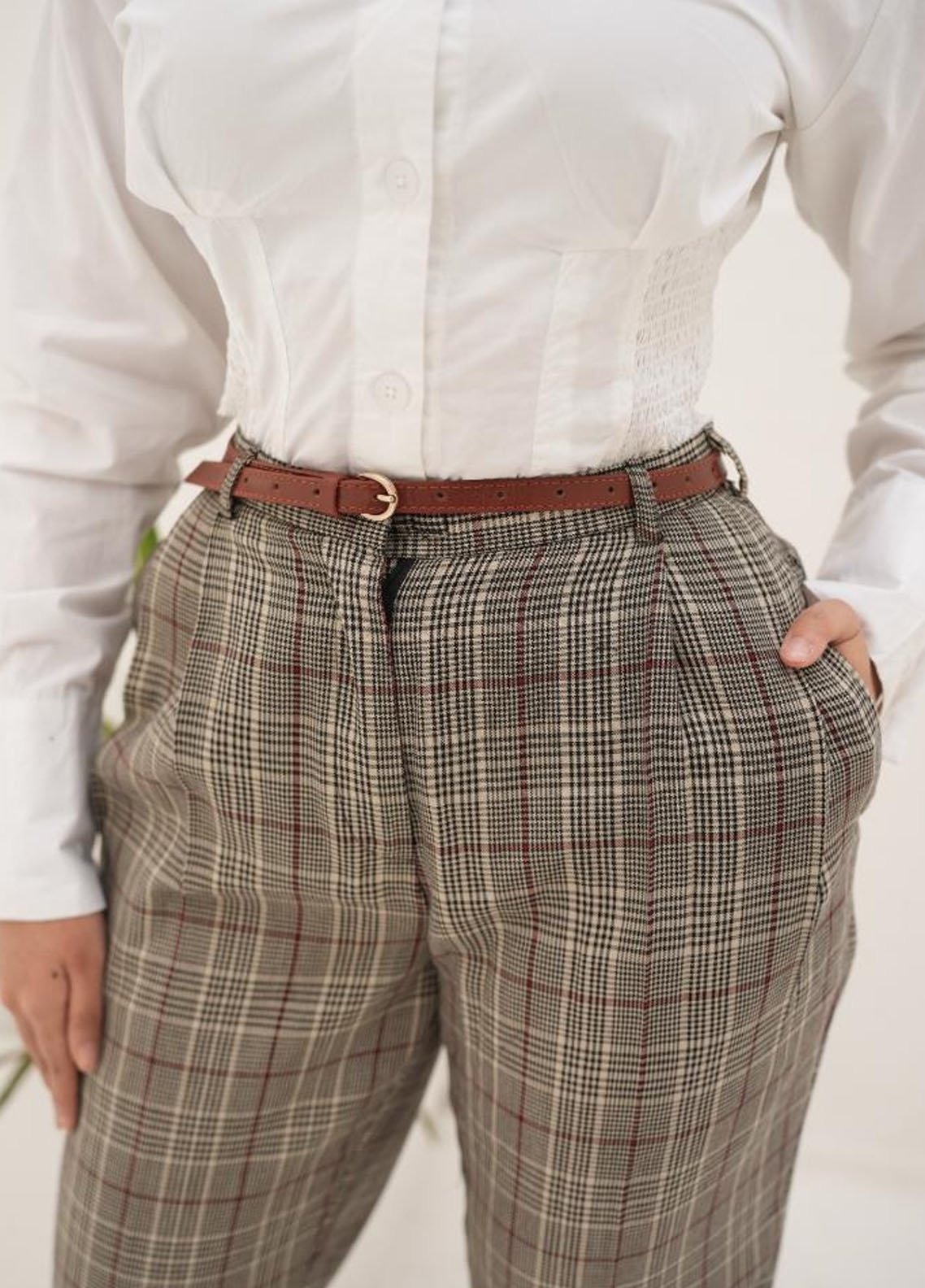 Old Money by Apricocia Pret Textured Cotton Pant Khaki Straight Pant