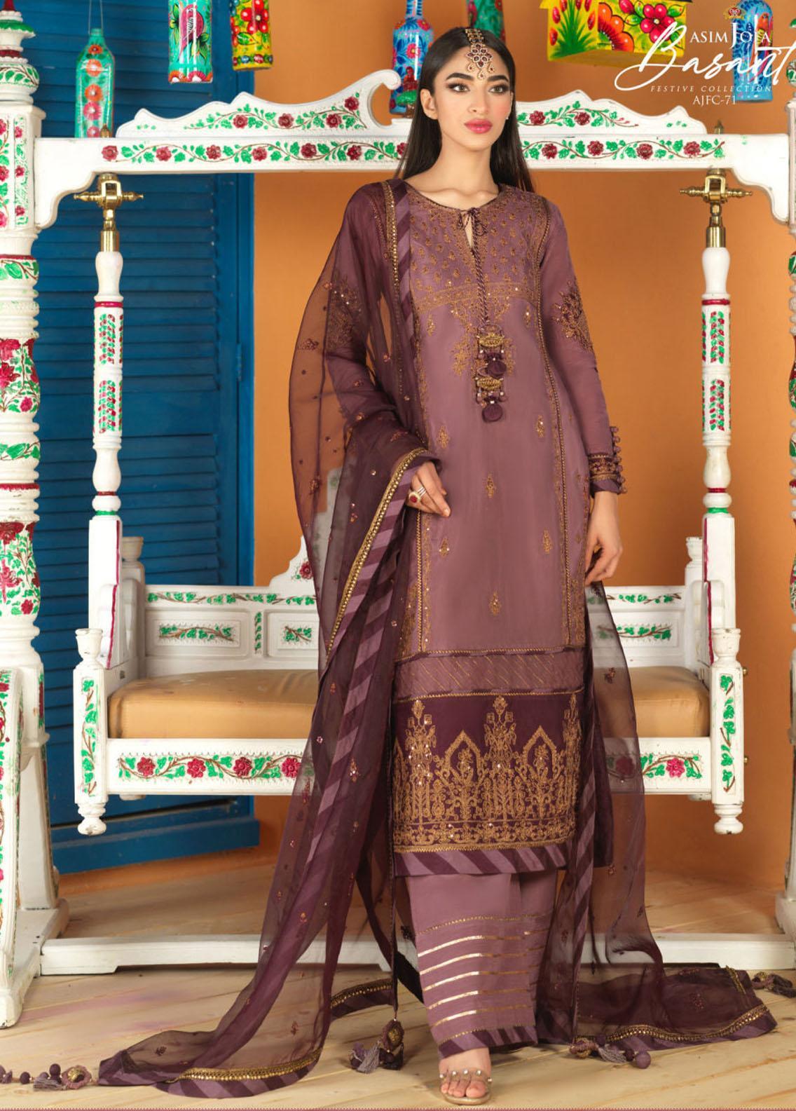Jashan-e-Basant By Asim Jofa Embroidered Viscose Silk Suits Unstitched 3 Piece AJ22JB AJFC-71 - Festive Collection