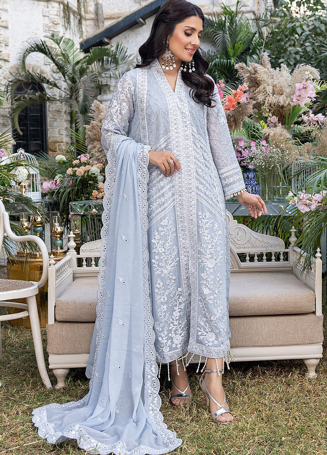 Azure Embroidered Chiffon Suits Unstitched 3 Piece AZU23L AS-95 Snowy Dove - Luxury Collection