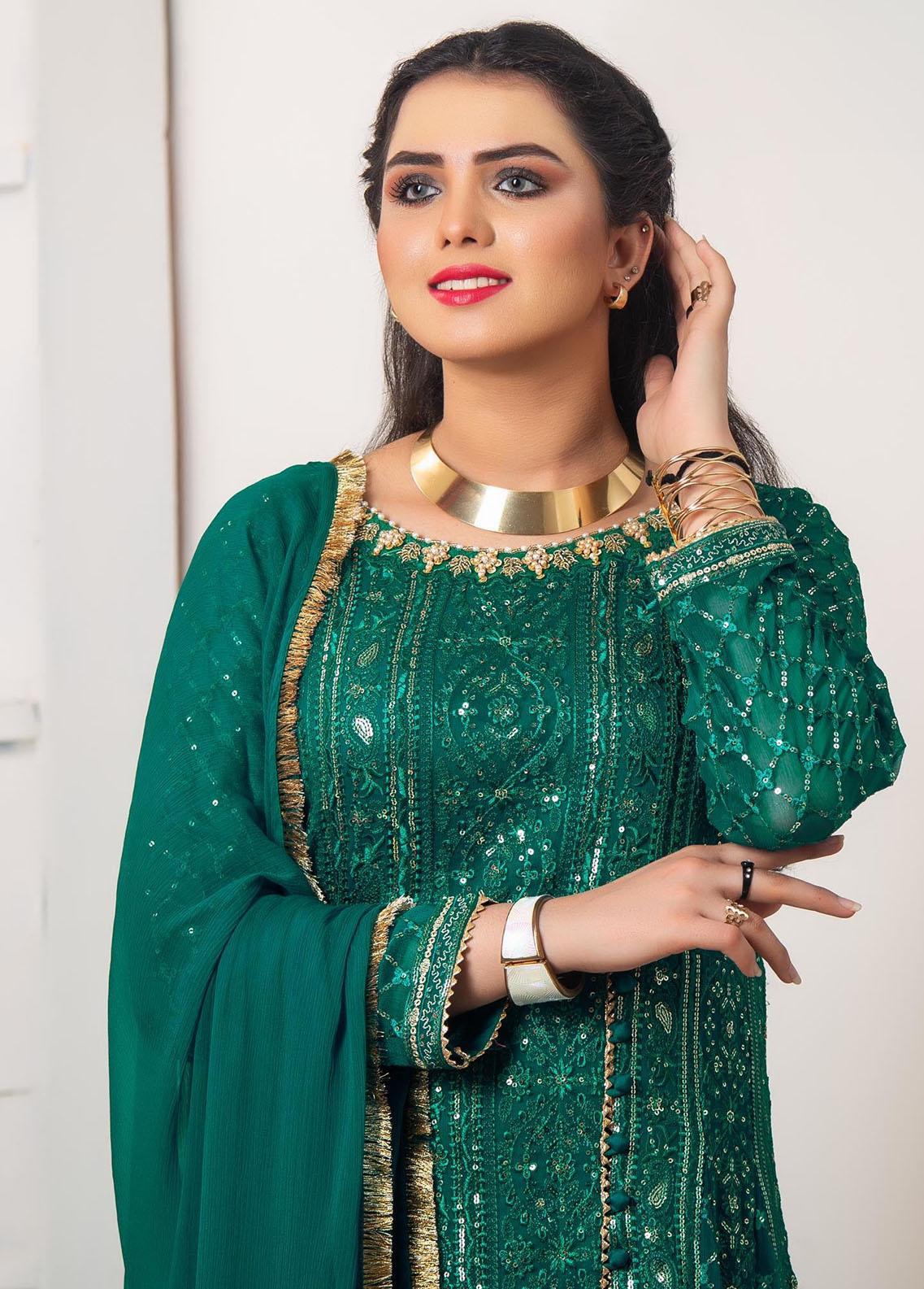 Embroidered Neck With Hand Work Side Button with Front Open Chikankari Featuring Exquisite Sequins All Over Enhanced with Fully Embroidered It s completed with a delicate Border dupatta to qualify as an epitome of grace