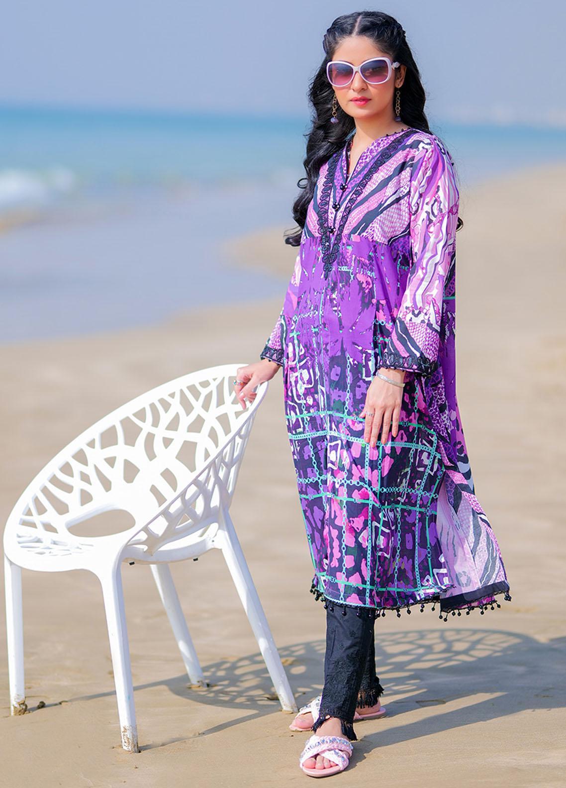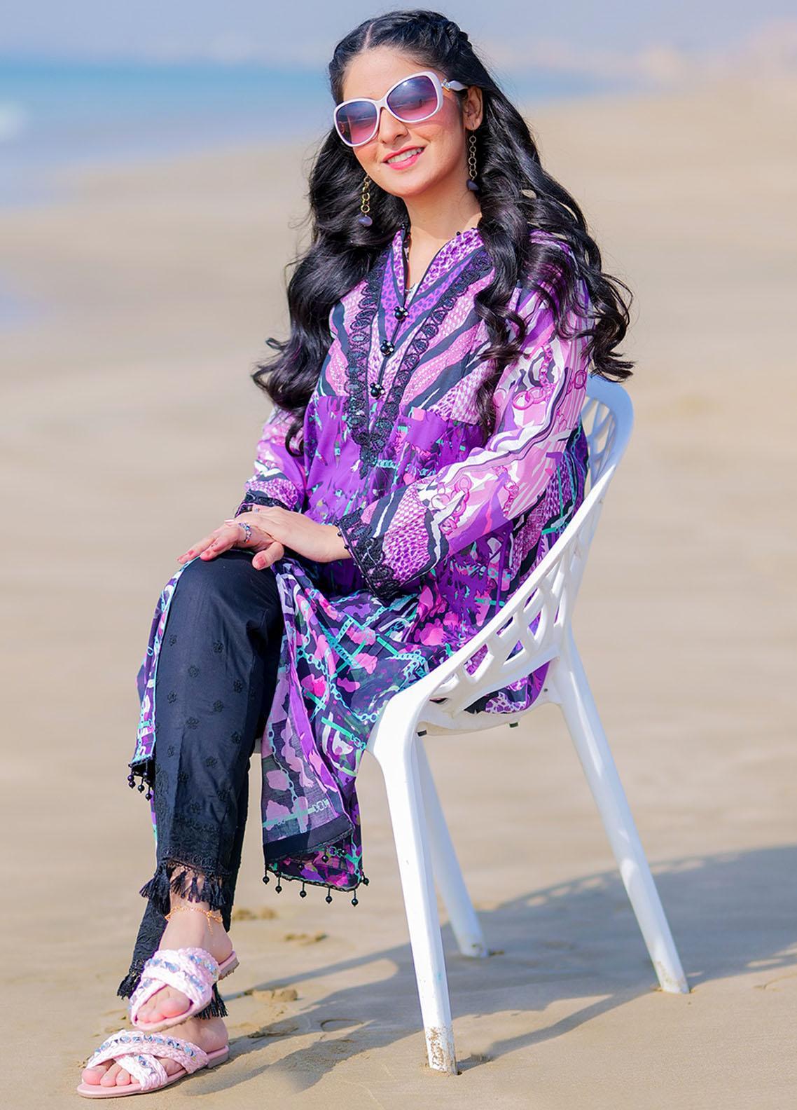 Casual Kurta | Cotton Lawn Print | Purple & Multicolor | LAA-01965