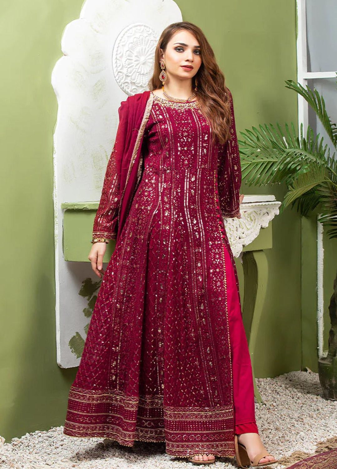 Al Harir Apparel Pret Eastern Chiffon 3 Piece Suit Ruby Peacock