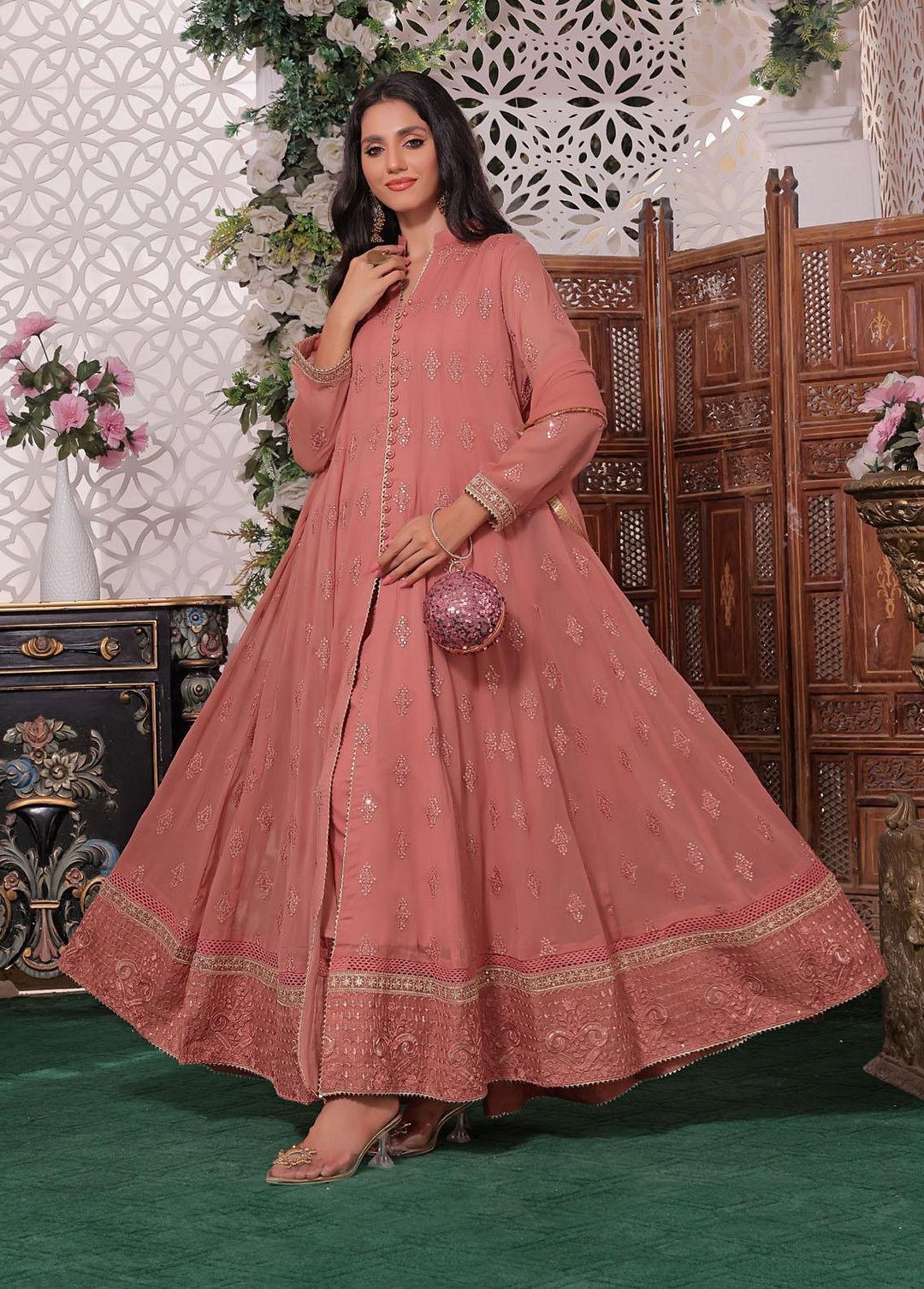 Al Harir Apparel Pret Eastern Chiffon 3 Piece Suit Ruby Peach