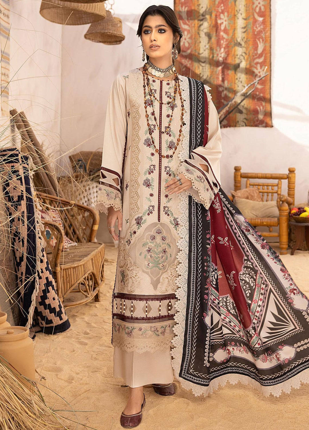 Serene By Bin Ilyas Embroidered Suits Unstitched 3 Piece BI23S 506-A - Winter Collection