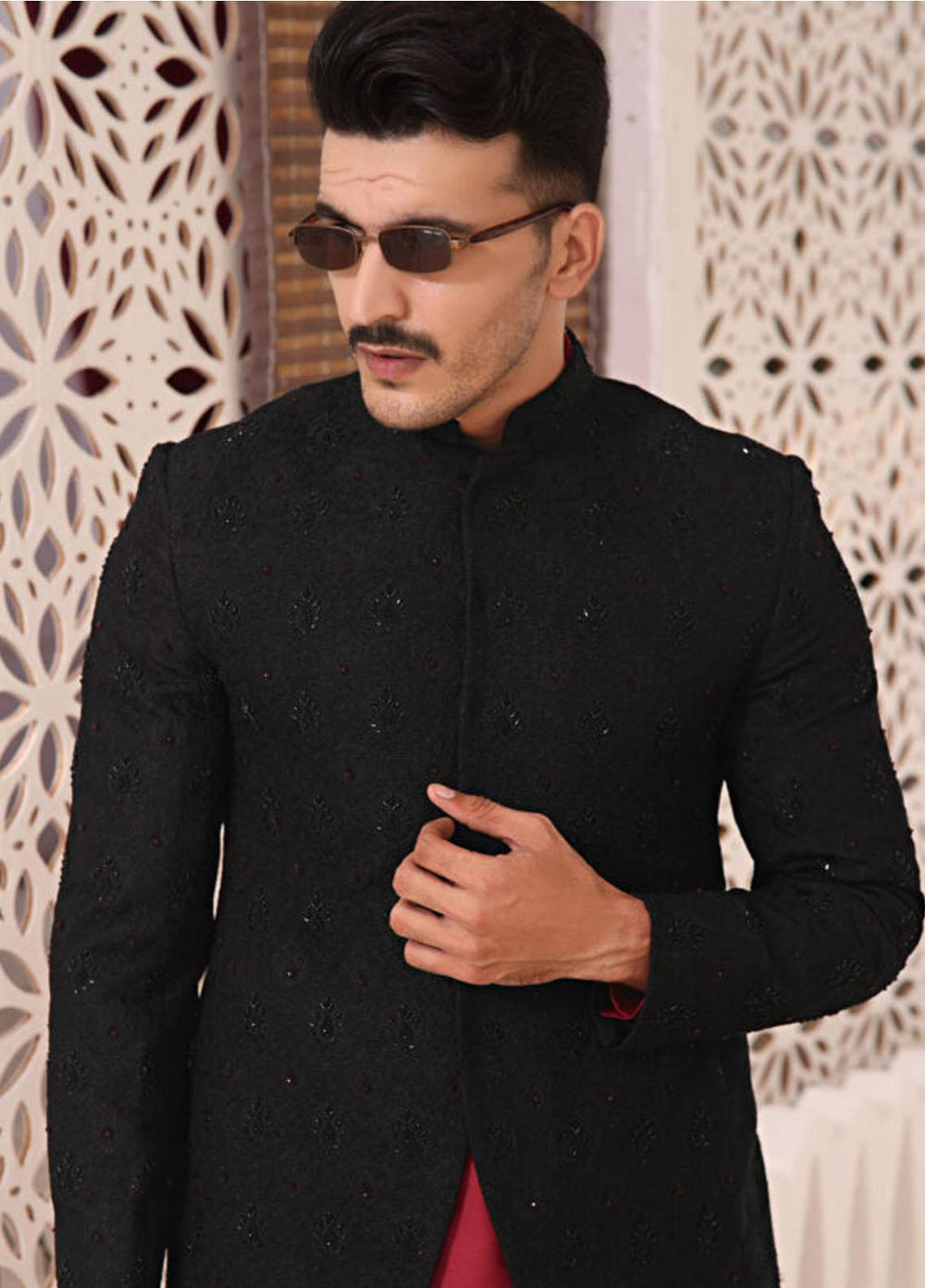 Bin Musab Embroidered Prince Coat for Men - BM-000030 Ruddy Black