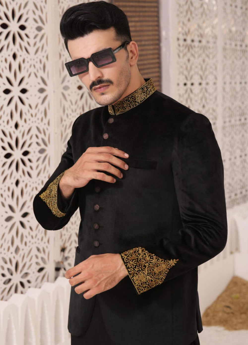 Bin Musab Velour Prince Coat for Men - BM-000028 Alsker Black