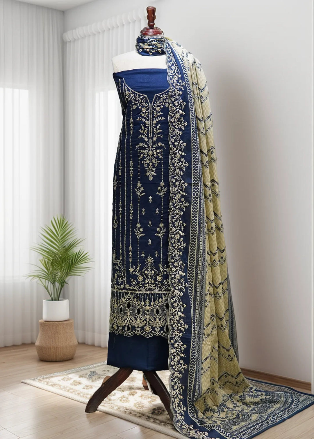 Farah N Faria By Bin Saeed Embroidered Lawn Suit 3 Piece Unstitched BS24F Blue - Summer Collection