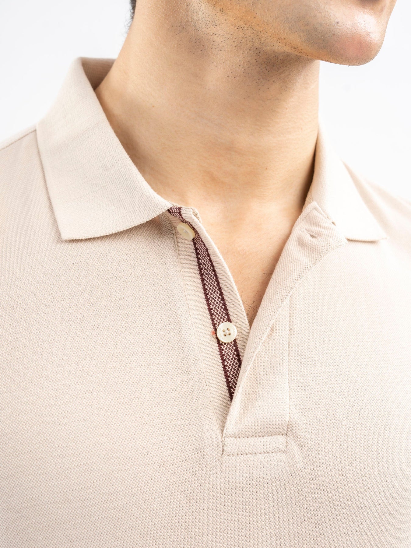 Upgrade your casual wardrobe with our mens stone pique polo, crafted from 100% combed cotton for ultimate comfort. This versatile polo offers a timeless look, perfect for everyday use. Finished with ribbed collar & jacquard patterned front placket