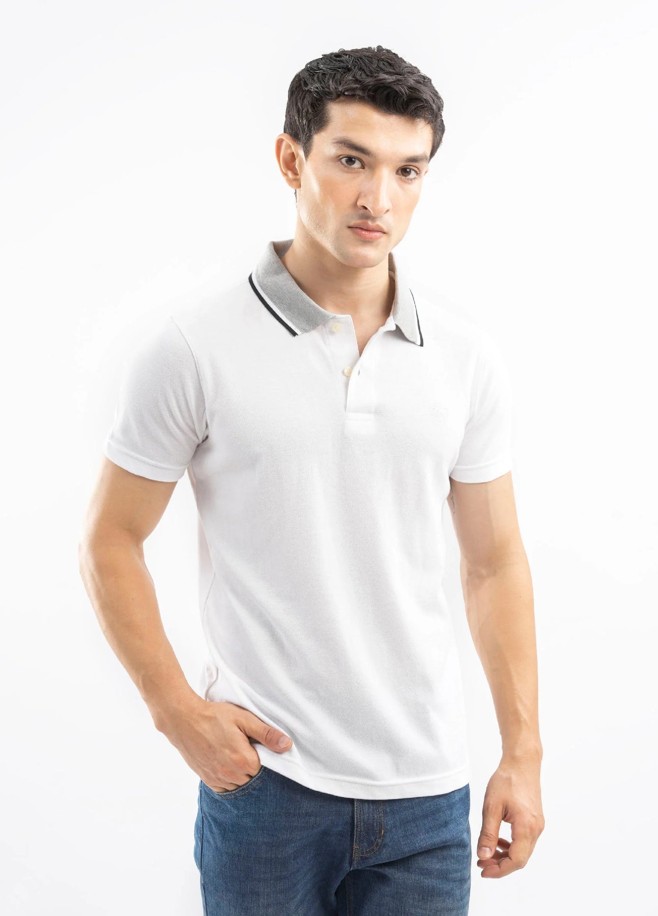 Perfect for everyday use, this sporty polo will keep you looking stylish on weekends. Made with lightweight and breathable 100% cotton pique fabric, this casual polo features sporty grey knitted collar with tipping. Ideal for casual wear