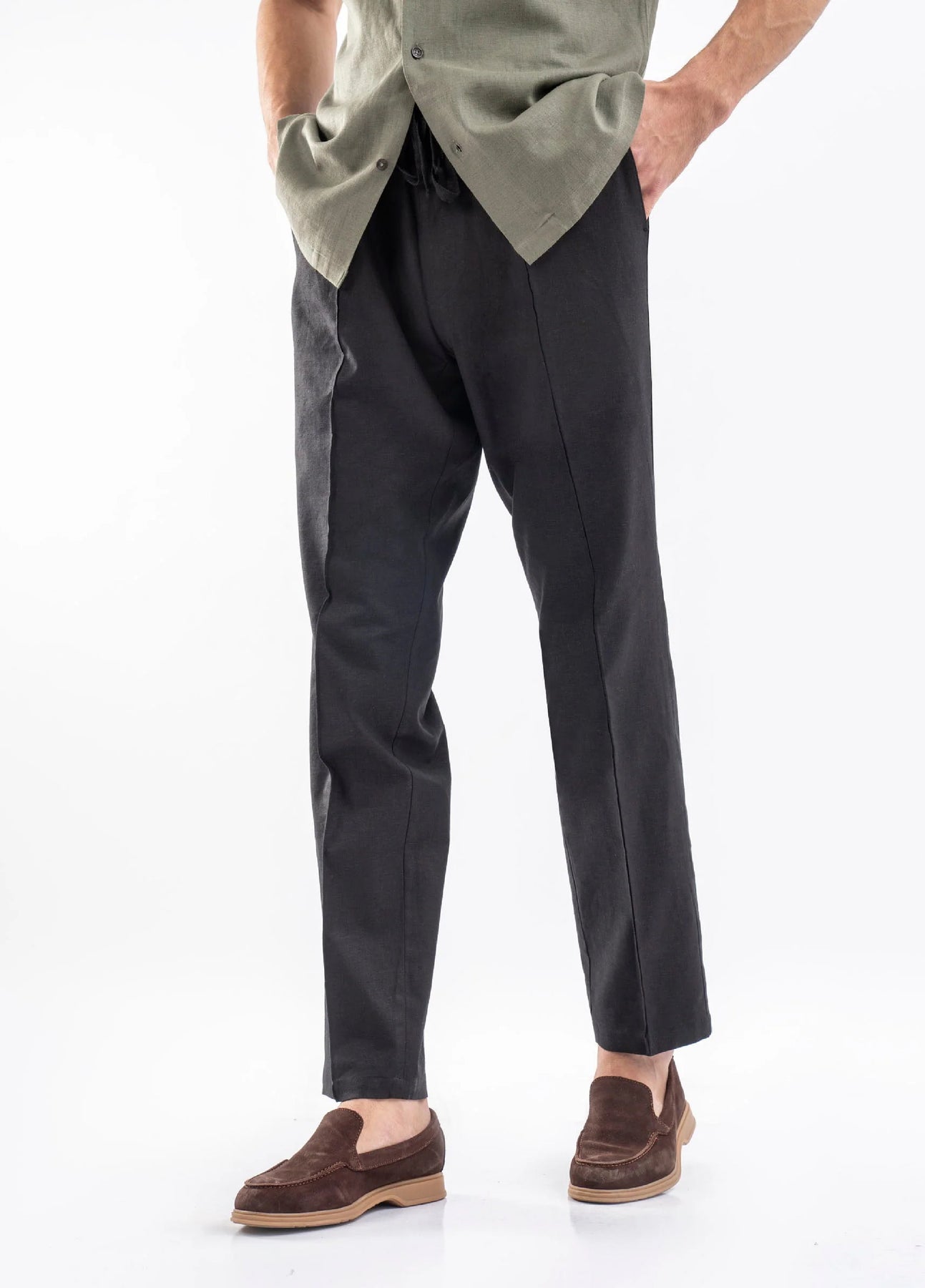 Experience ultimate comfort with our men's black linen pajama trouser, crafted from cotton/linen blended fabric. Lightweight and stylish, it features a relaxed fit to ensure that you stay comfy on hot day. Perfect for lounging, casual outing or traveling