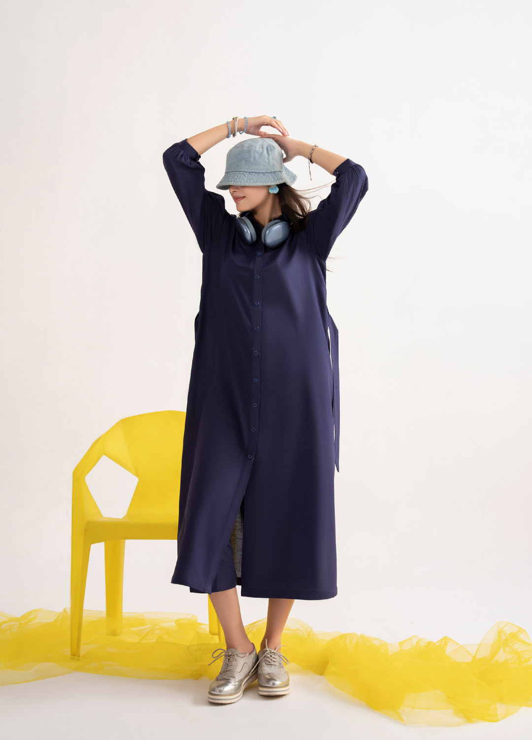 Like a Bird by Casuallite Women Pret Linen Solids Suits 2 Piece D-4 Urban Indigo Flow - Winter Collection