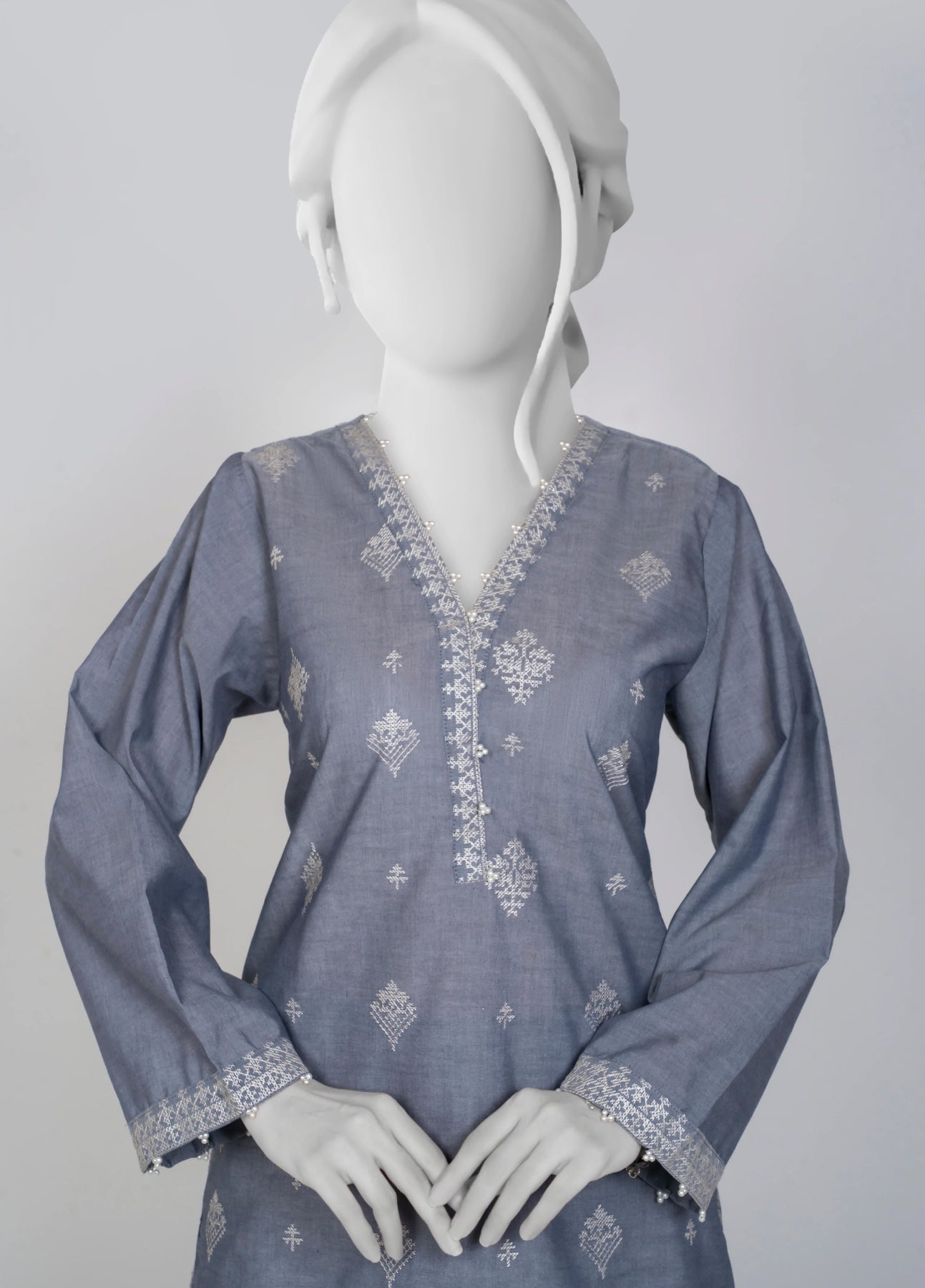 Embrace the Chambrey Winters 2025 collection with this elegant Charcoal 2-piece set featuring solid embroidery that adds refined texture and charm. Paired with tulip-shaped trousers, it offers a fresh and graceful silhouette perfect for stylish winter wear. This ensemble blends comfort and sophistication, making it an ideal choice for those seeking understated elegance with a modern touch.