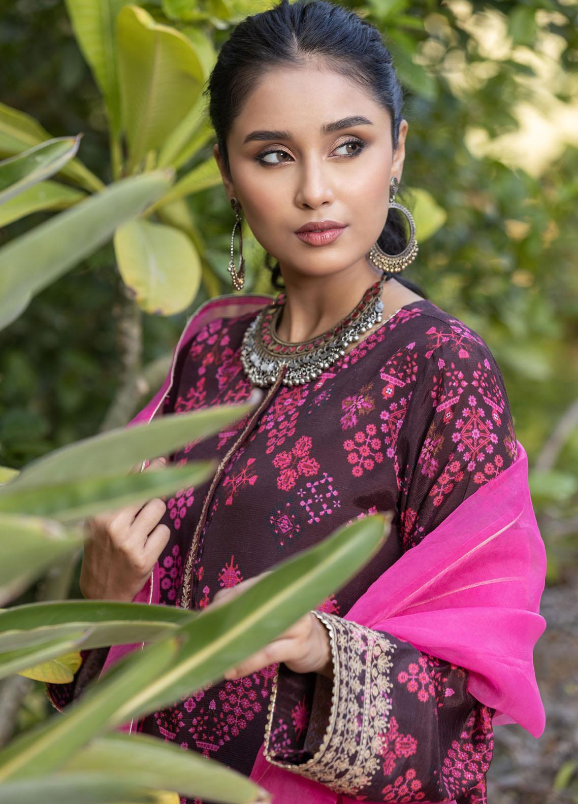 Color: Plum With Pink Dupatta