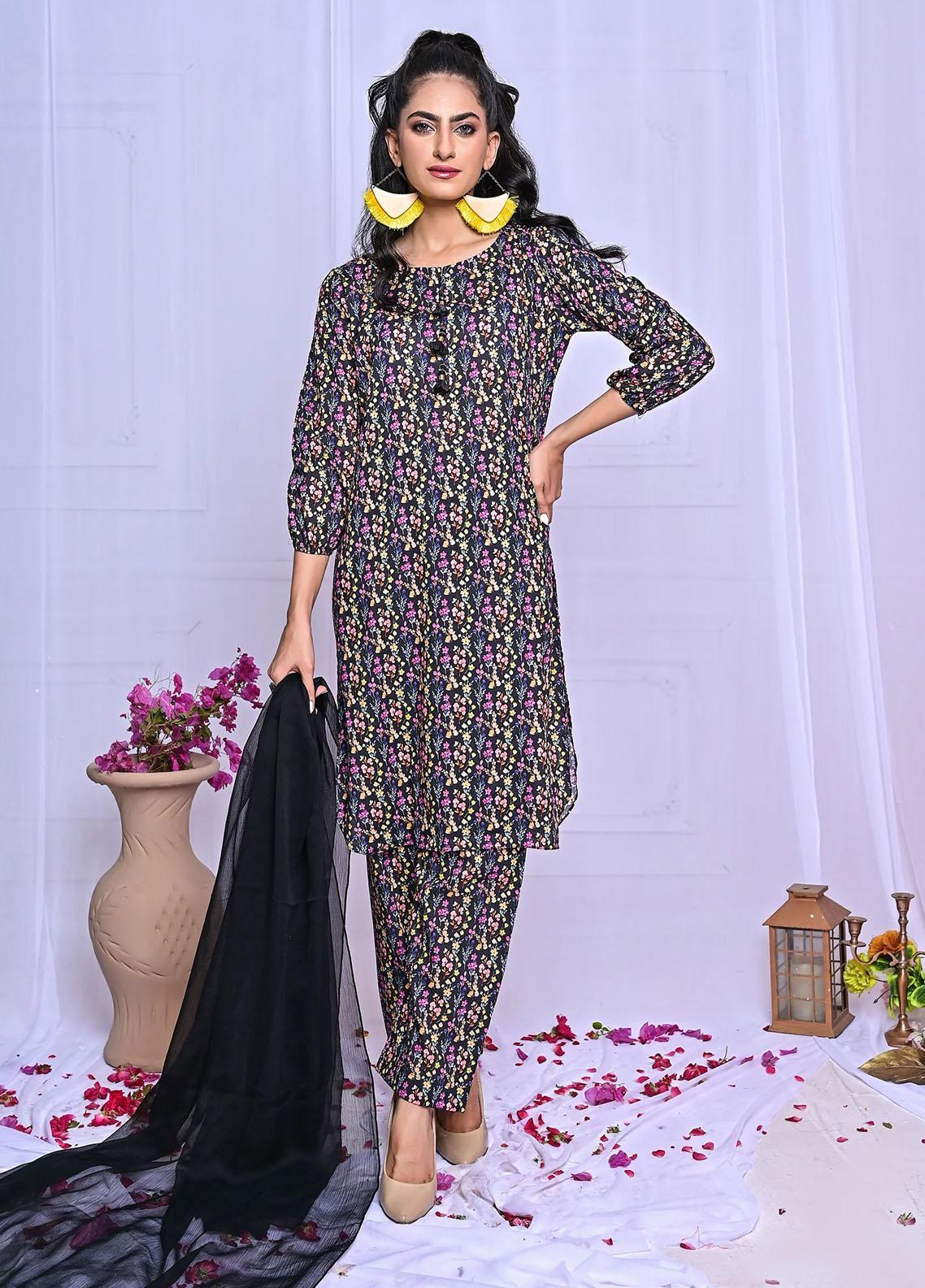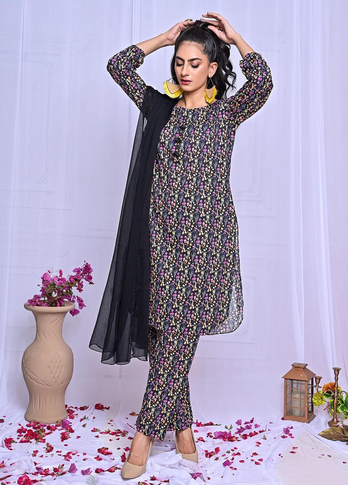 Digital Printed shirt with cute buttons and stylish trousers with chiffon dupatta