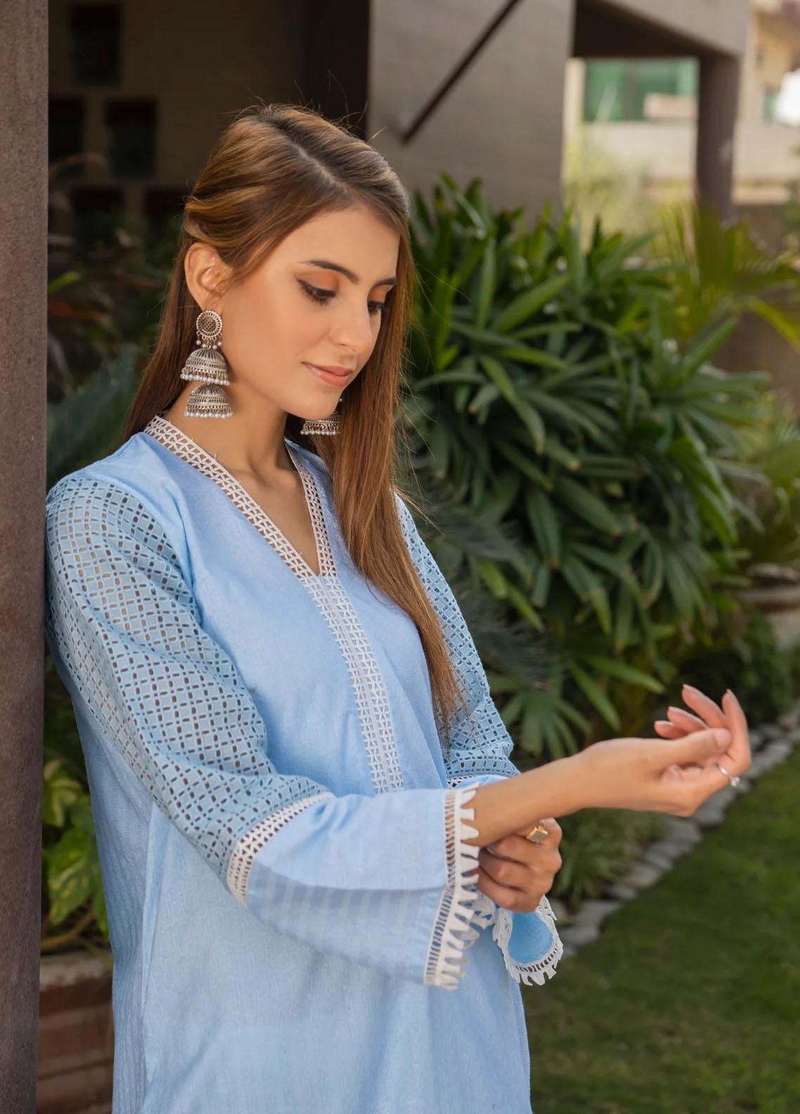 Naaz Couture Casual Pret Chikankari Lawn Kurta NC23NK-2 Sky Blue
