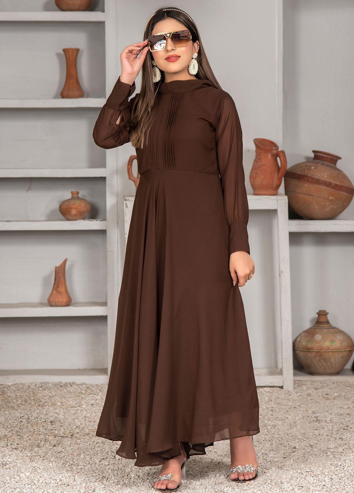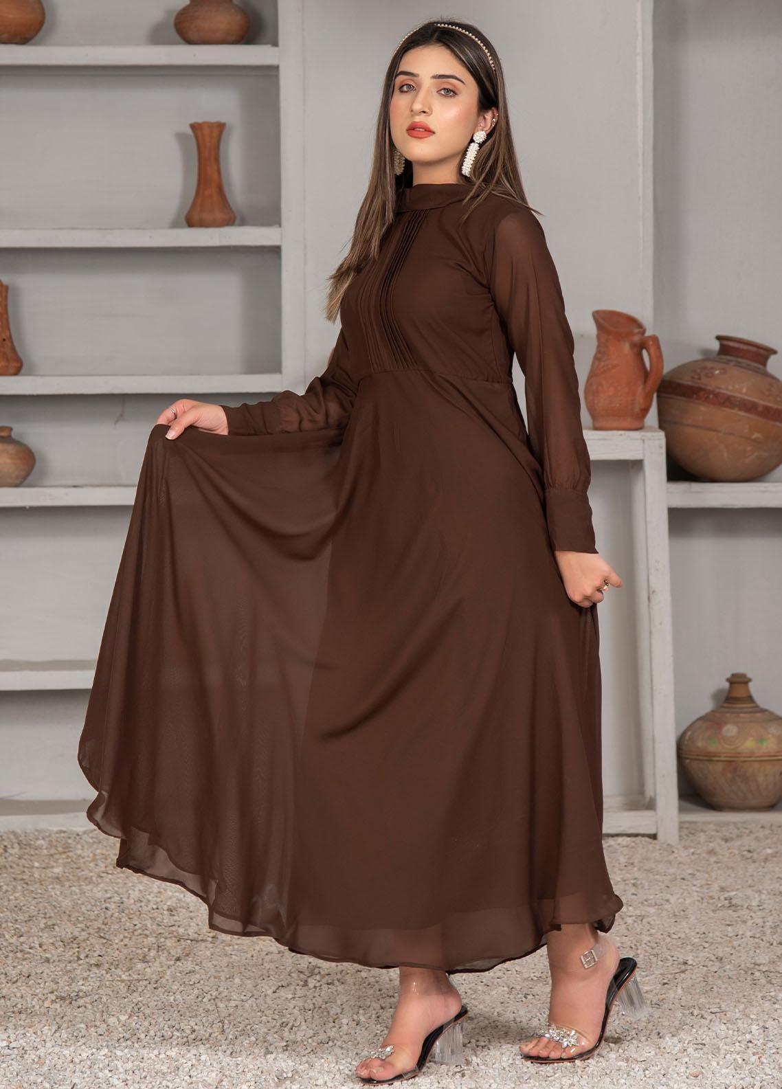 Nazmina Pret Casual Chiffon Frock NZ23Z FR-633 DARK CHOCOLATE