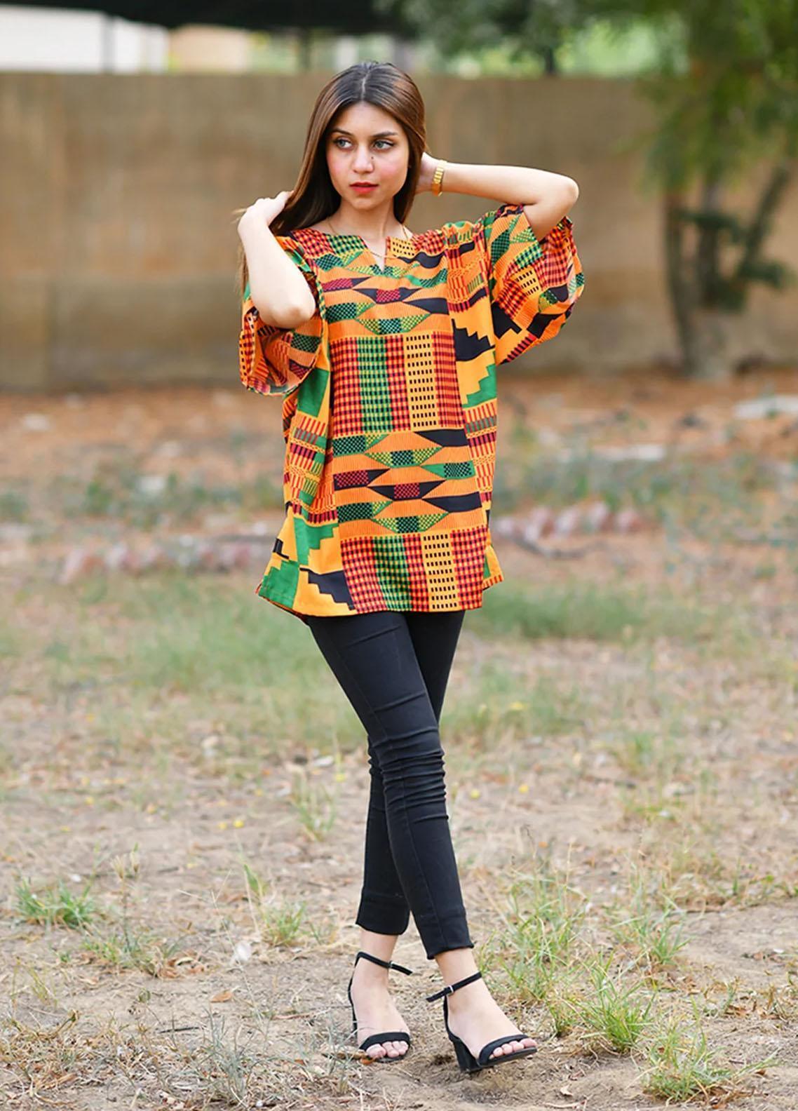 Uzul Trends Pret  Cotton Kurti UT Orange Abstract