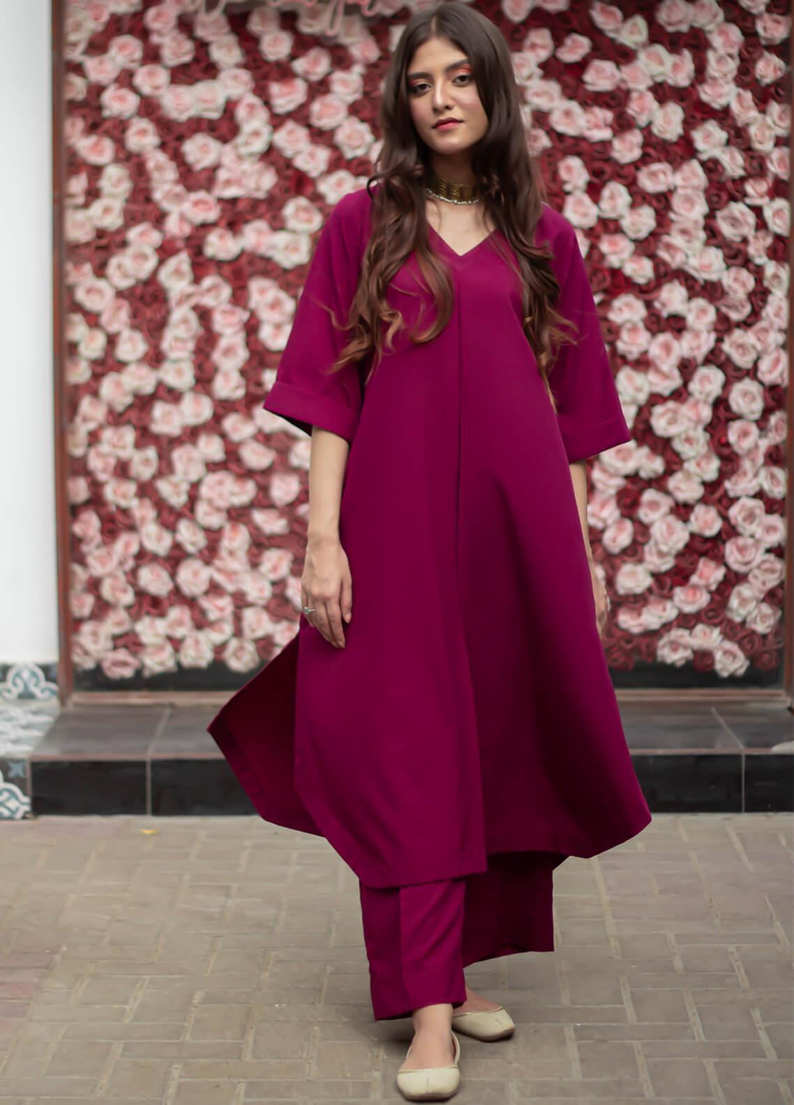 its a two piece malai georgette matching set includes a flowy shirt with front pleat along with cullote.