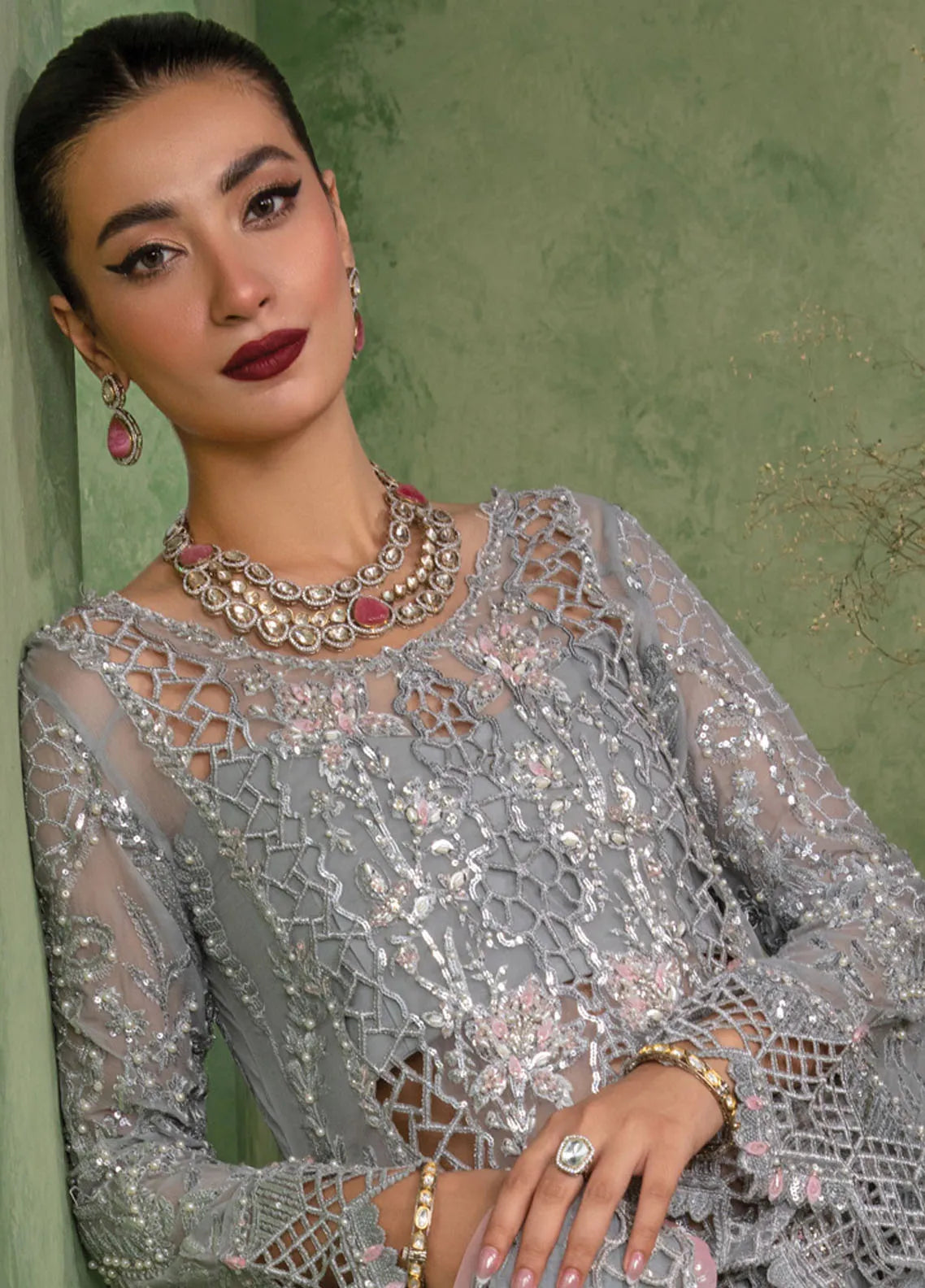 • Dyed Embroidered Adda Work Sleeve On Chiffon 26