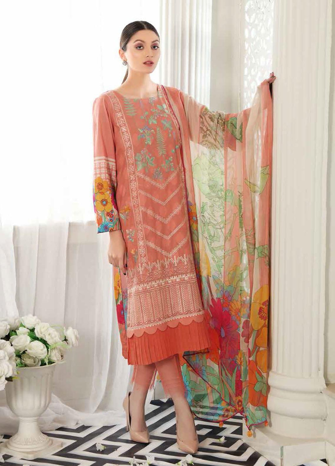 Charizma chiffon is always loved by their customers who are purchasing their chiffon since they are designed to meet the needs and requirements of their dependable customers. This brand has built up an association with each one of their customers since they satisfy their needs. This collection is exceptionally flawless and incredible. It includes a 3 piece suit with embroidery on the shirt, a net duppata, and a raw silk plan trouser.