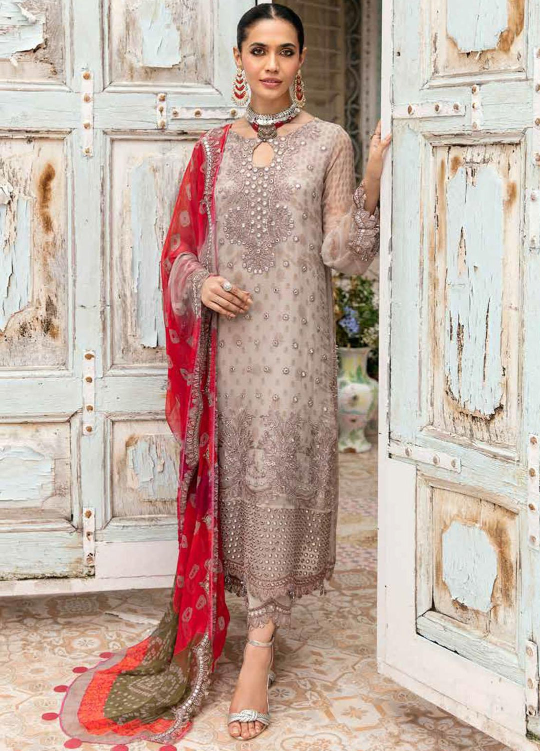 Charizma chiffon is always loved by their customers who are purchasing their chiffon since they are designed to meet the needs and requirements of their dependable customers. This brand has built up an association with each one of their customers since they satisfy their needs. This collection is exceptionally flawless and incredible. It includes a 3 piece suit with embroidery on the shirt, a net duppata, and a raw silk plan trouser.
