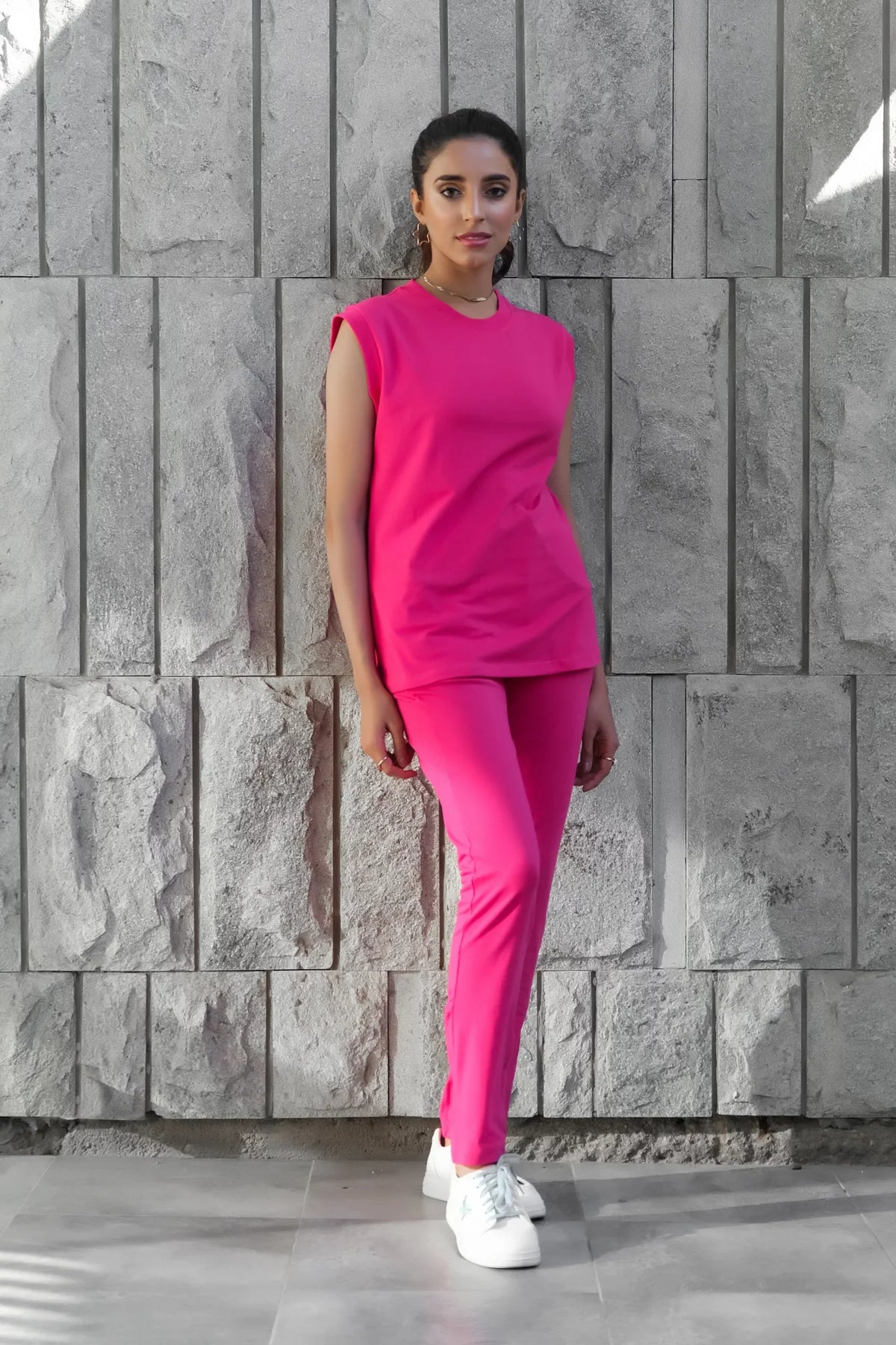 Fushia Summer Co Ords - Sleevesles T-Shirt with Trouser