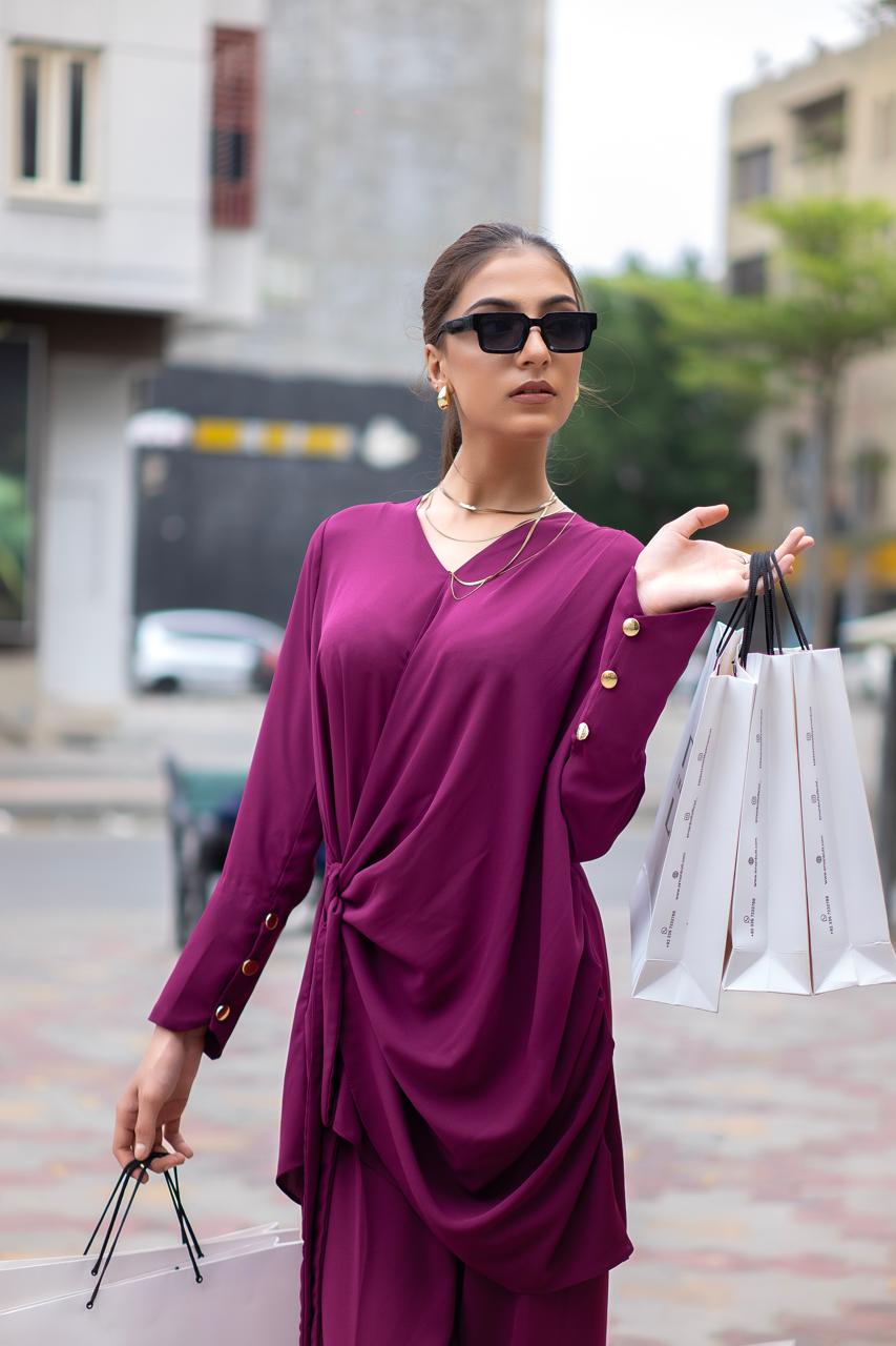 Venus emerges in a deep Jazzberry Jam, a vivid magenta-purple shade that blends playful energy and sophistication, making it instantly eye-catching. This matching co-ord set features soft-flowing fabric sculpted into a chic silhouette, perfect for anyone who wants statement elegance without compromise. Chic, classy, and completely unforgettable. Venus is your go-to dress when elegance meets modern boldness in every stitch.