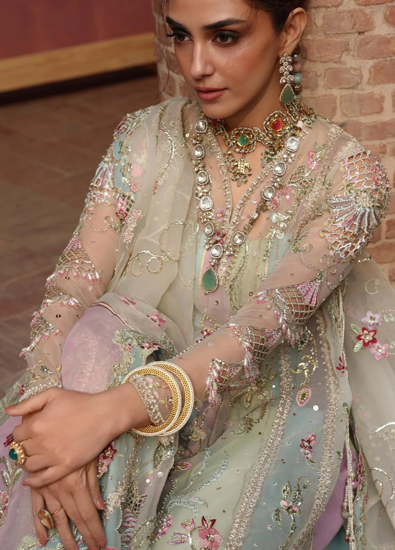 • Sequinned, Embroidered, Adda Work, and Foil Appliquéd Centre Panel
