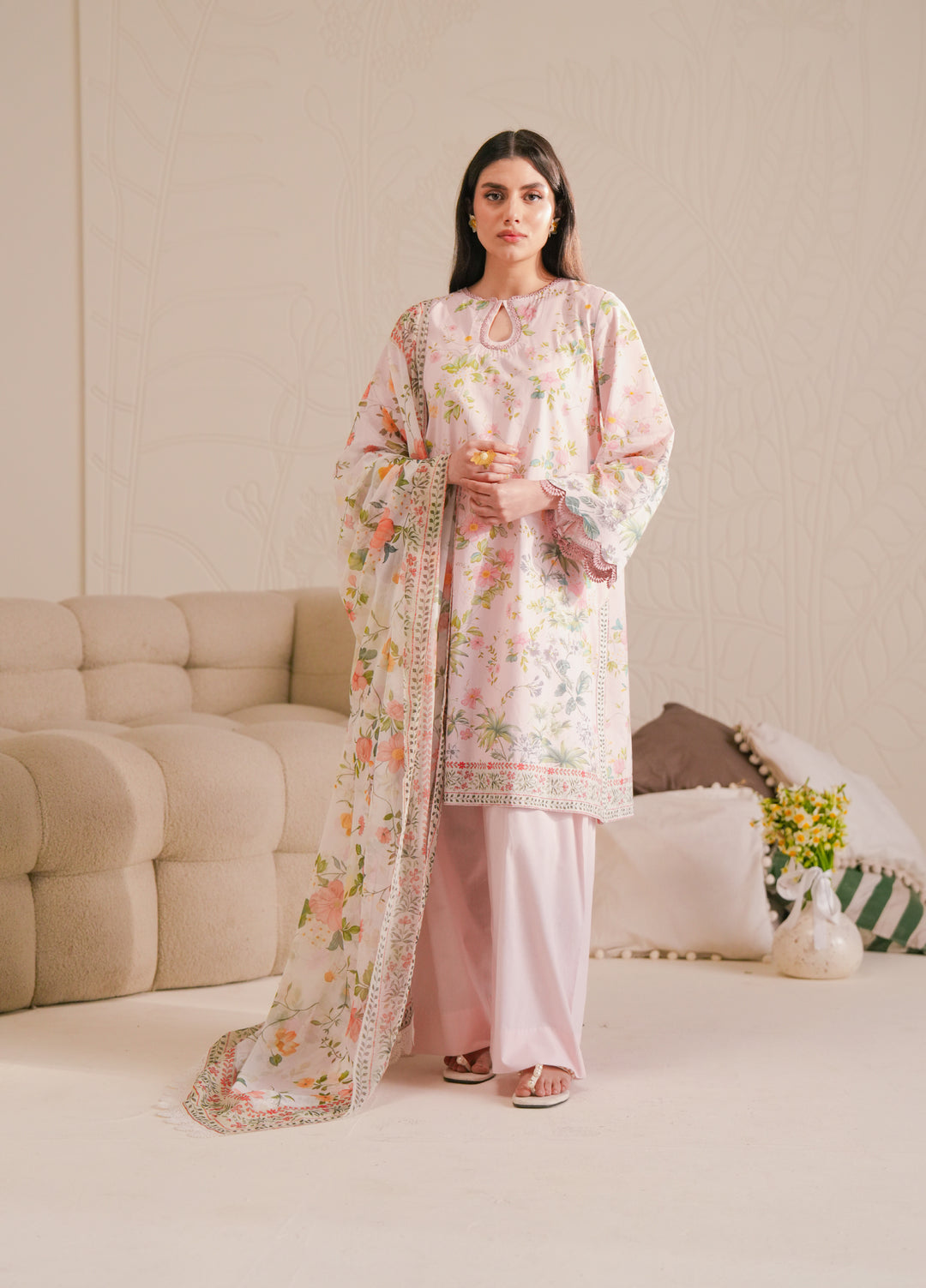 Ladies hold your seats tight the beast has just hit the market. This collection is full of colors and the sweet fragrance of flowers with lush green grass that will give you a fresh and alive atmosphere. It has created with the combination of both spring and summer colors the dresses are in the soft and light and both shaded. This collection has a digital printed shirt, digital print floral printed dupatta and cigarette pant which gives you a completely different and the most elegance style.
