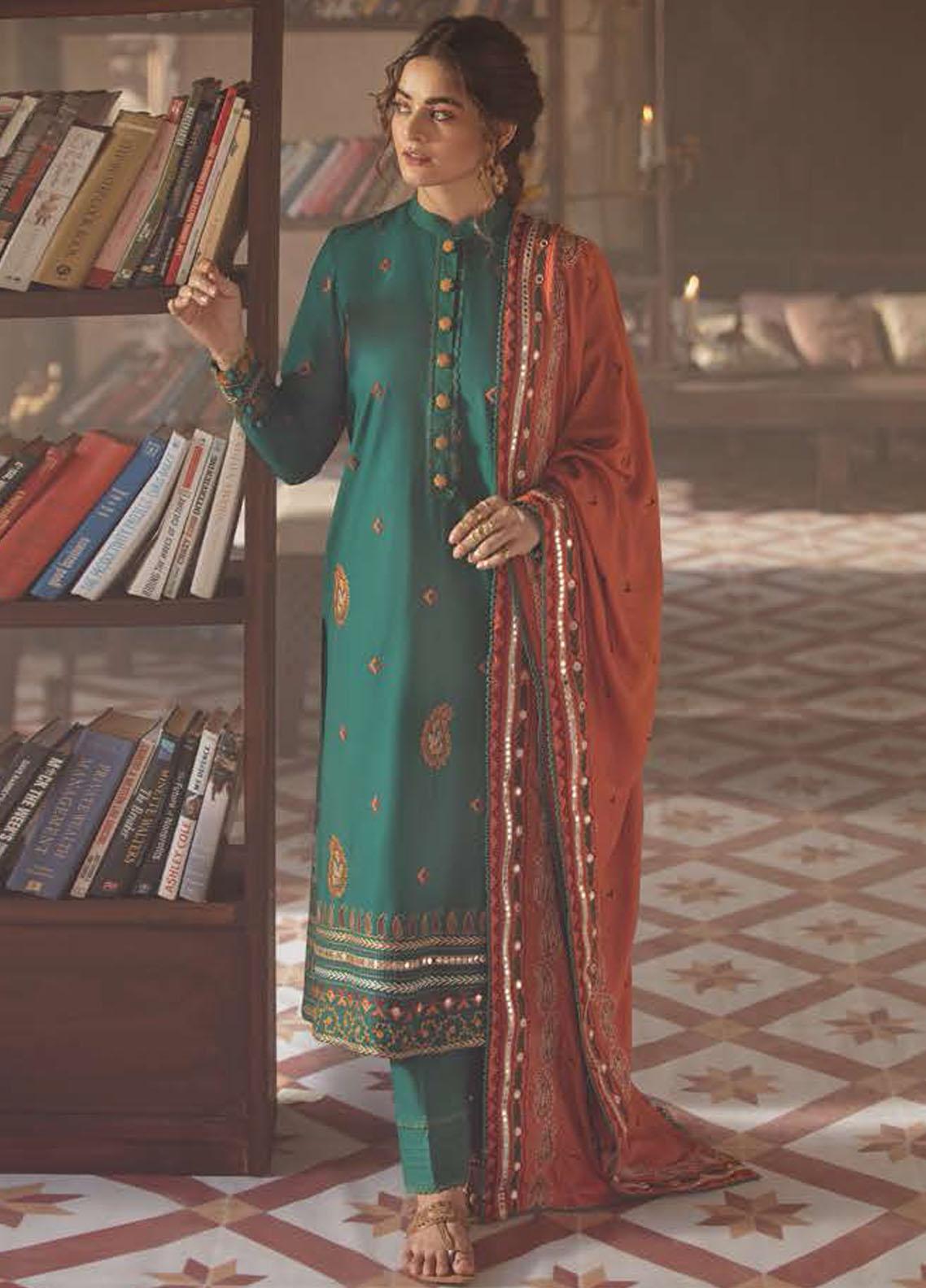 3 Piece Embriodered Cotton Satin Suit