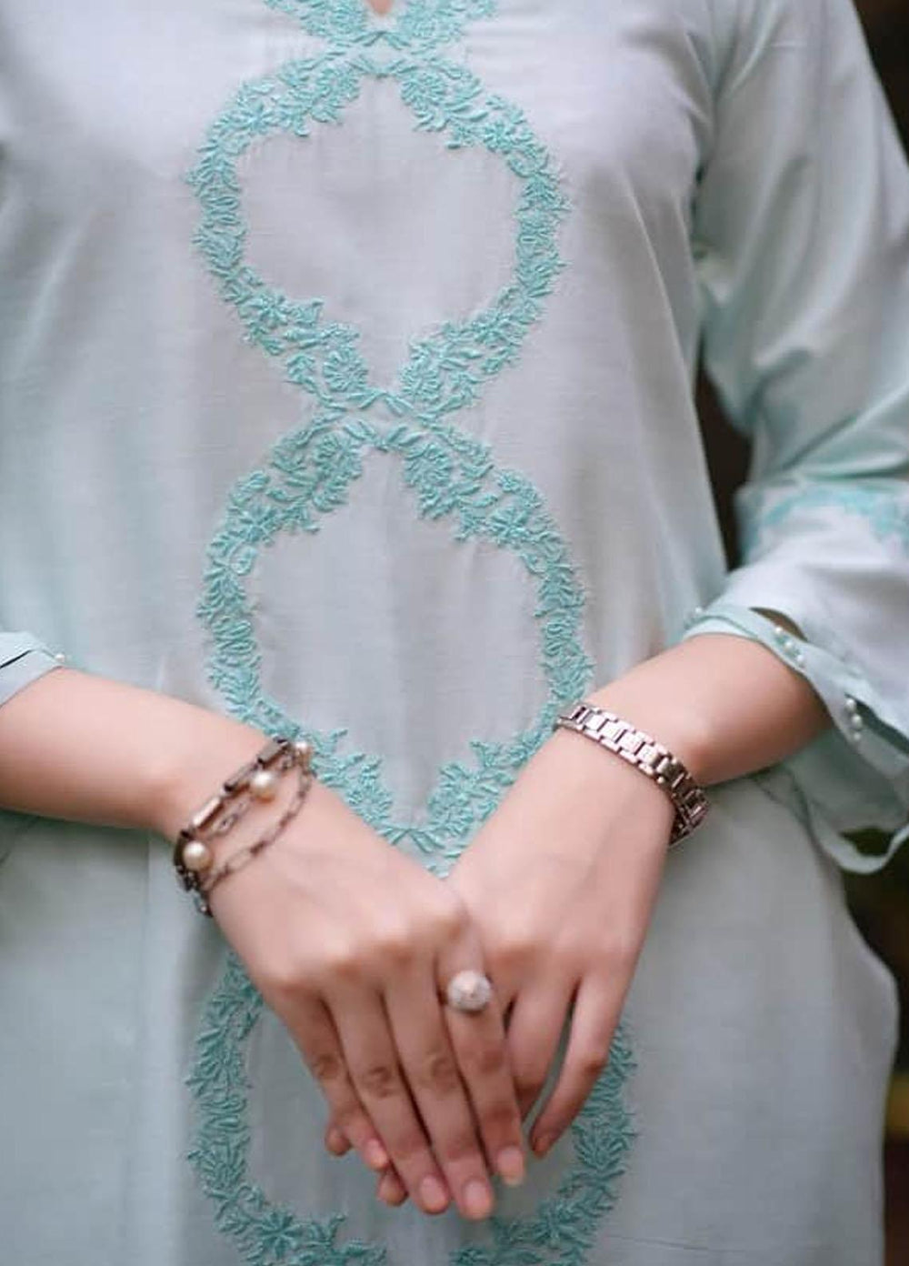 Beads embellishment on sleeve edges