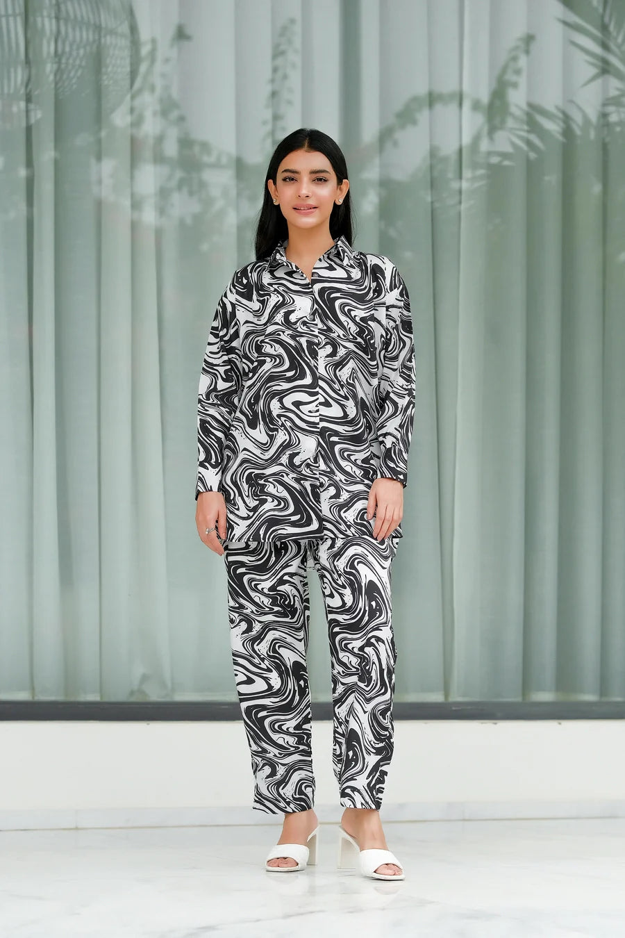 The radiant ensemble offers a unique and stylish look for any special occasion. This 2-piece suit features a chic contemporary short shirt with minimal floral prints. The matching trousers make it a trendy outfit to style at fun gatherings.