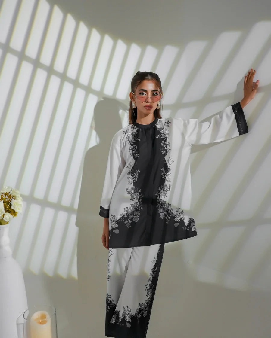 This 2 piece printed-colored co-ord set features luxurious and comfortable fabric and impeccable cuts given to every detail of the article, offering versatility and sophistication for any occasion.